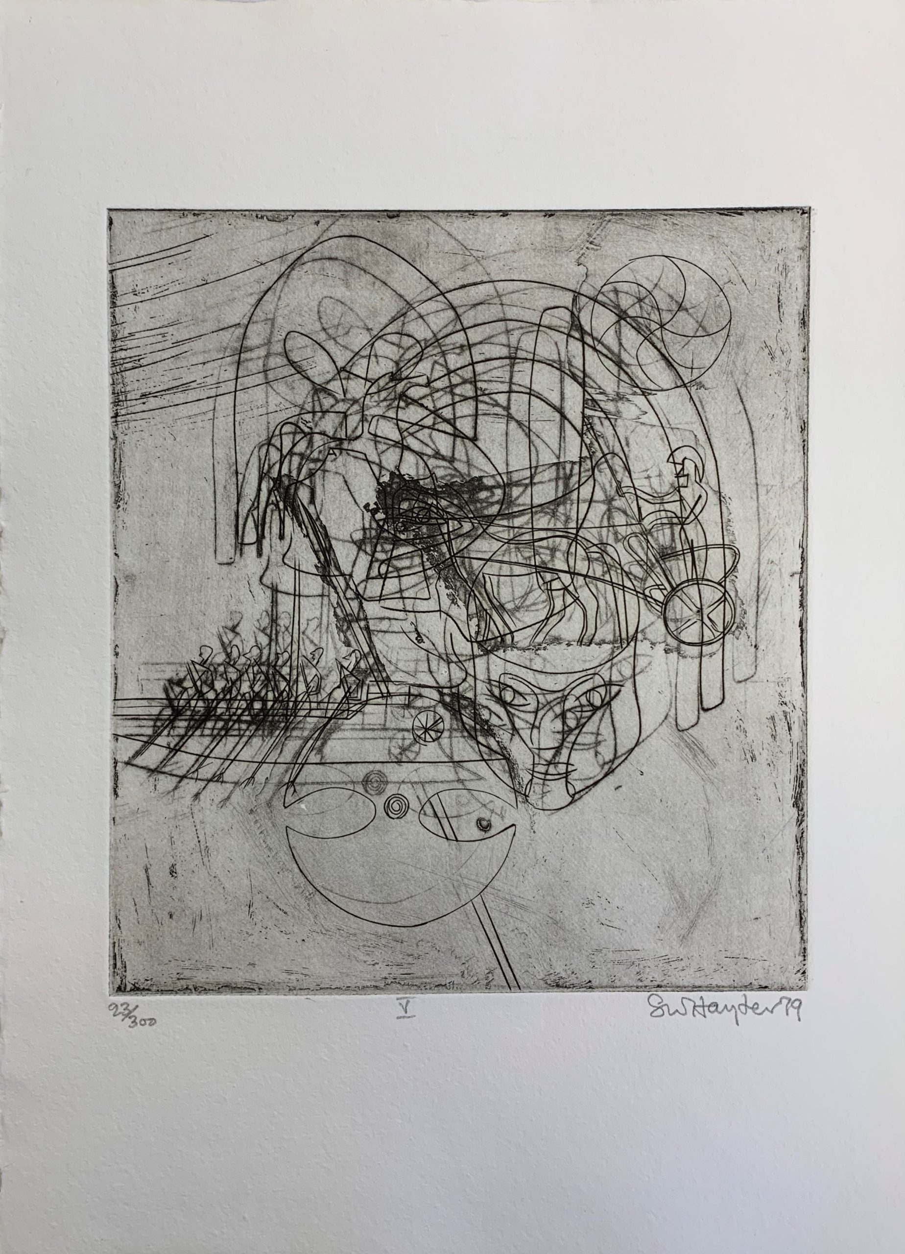 Echoes of War, an Intaglio engraving, the fifth of the nine intaglios by Stanley William Hayter that illustrate the book-length poem Death of Hektor by Irish poet Brian Coffey.