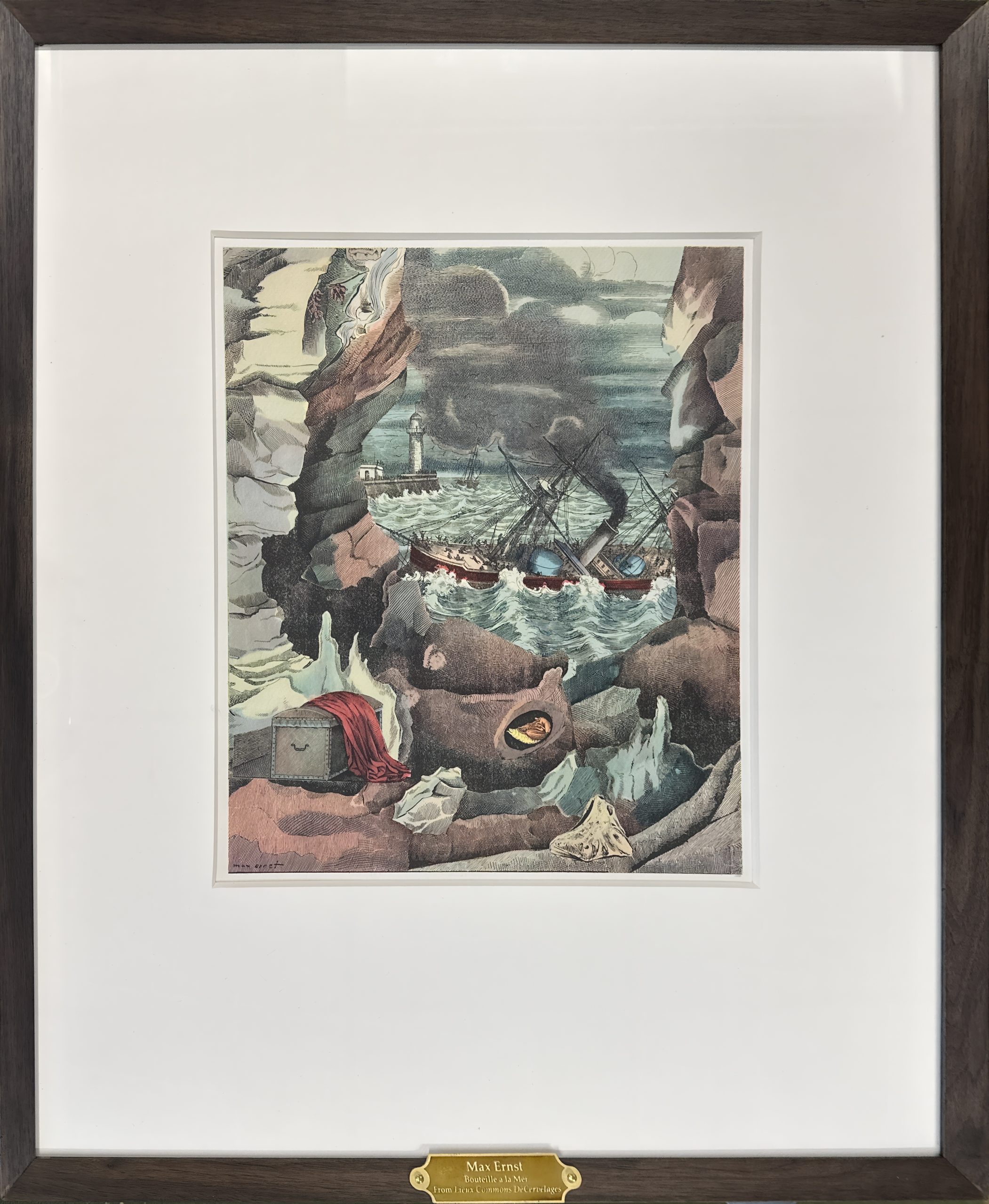 Custom matted and framed using strictly conservation-grade materials in a waxed Walnut frame behind 99% UV-blocking art glass.