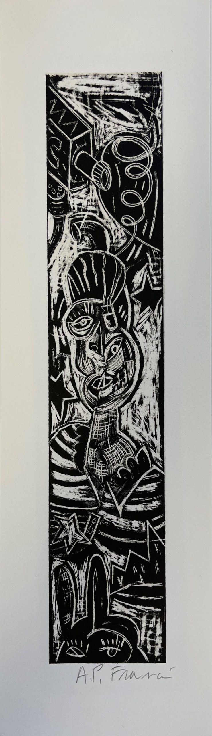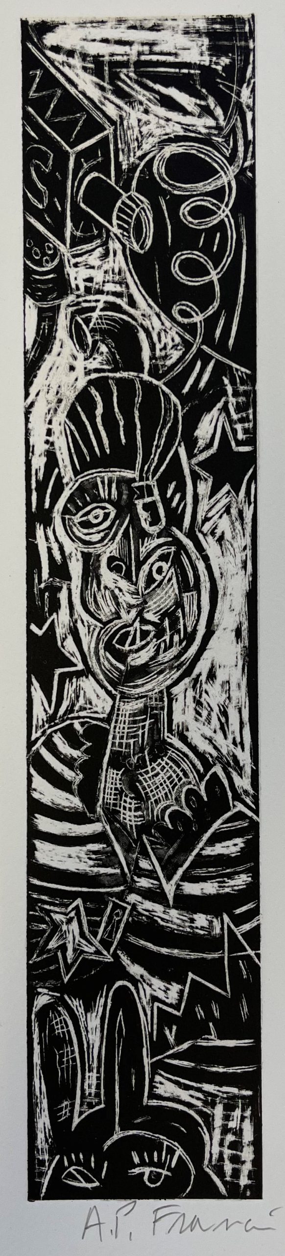 This linocut is part of Ke Francis‘ “Tornado Series”.