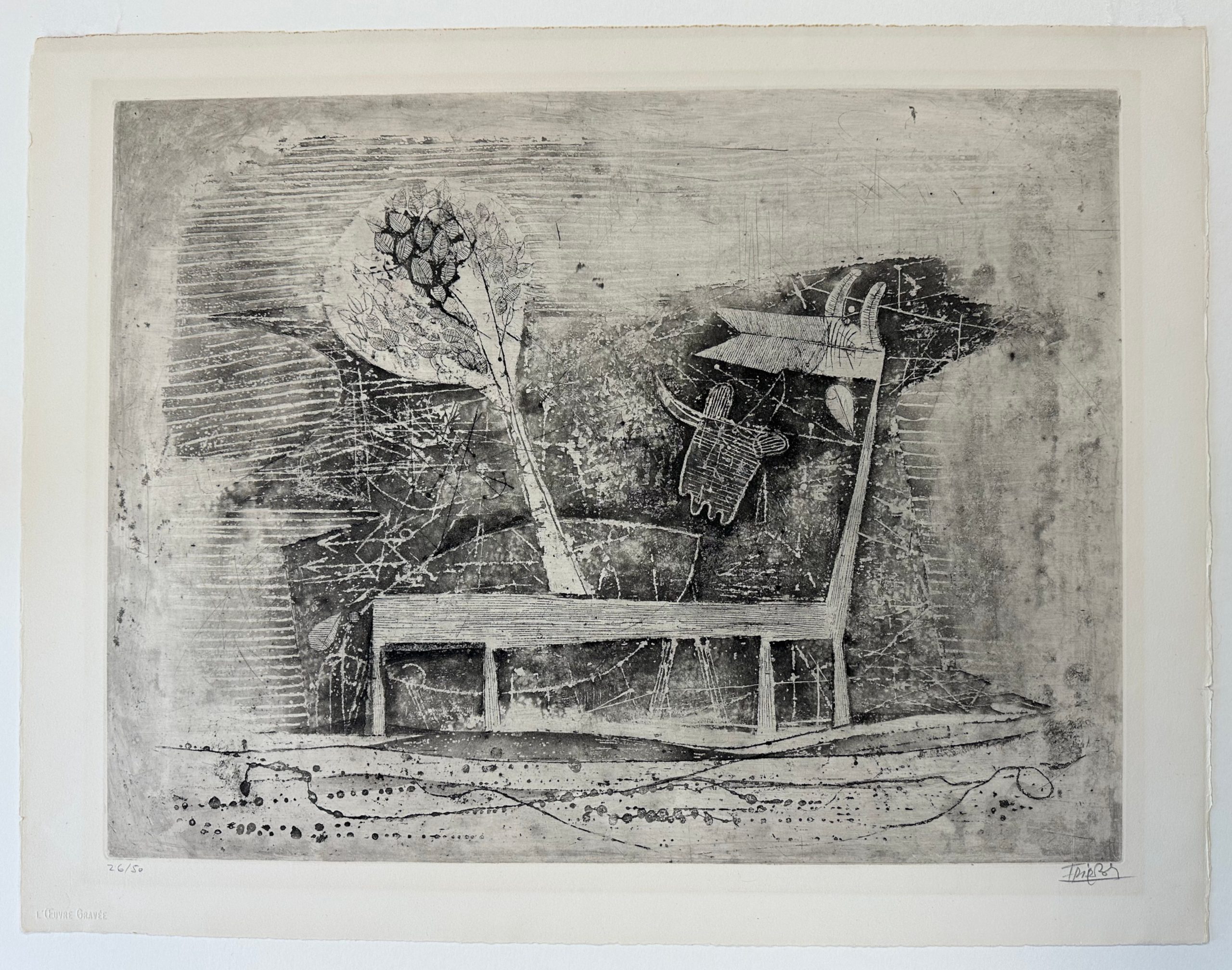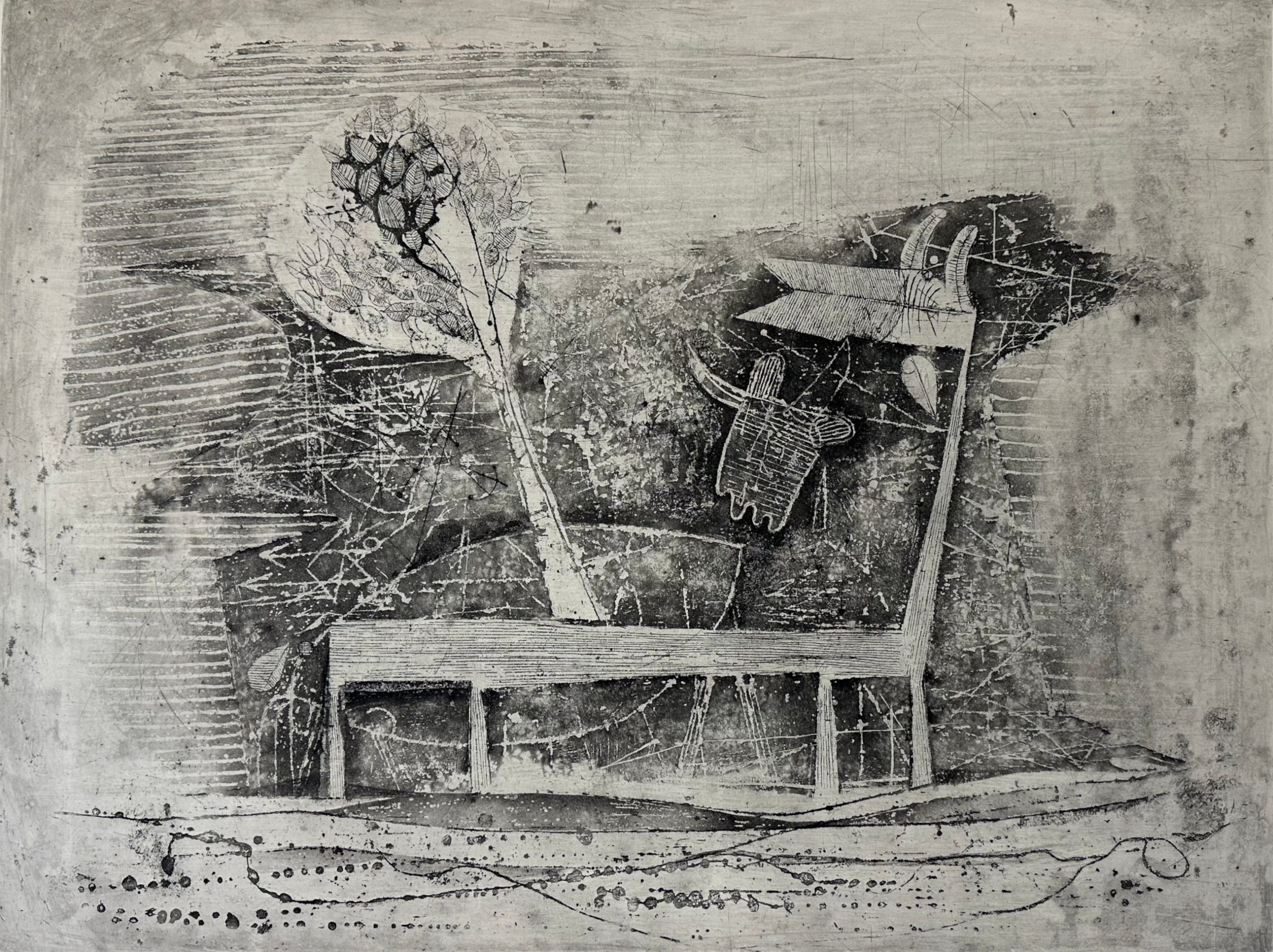 Etching In Black On Natural White Bfk Rives Wove Paper