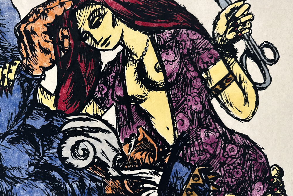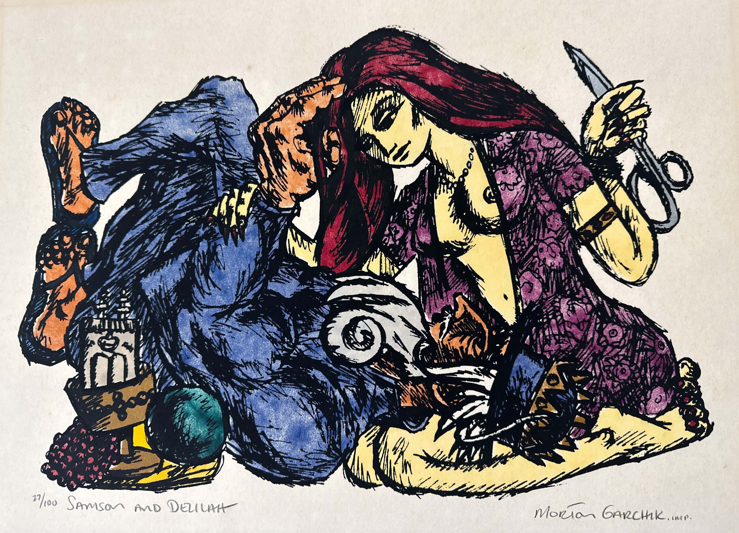 With this vivid woodcut, Morton Garchik illustrates Delilah’s treachery.