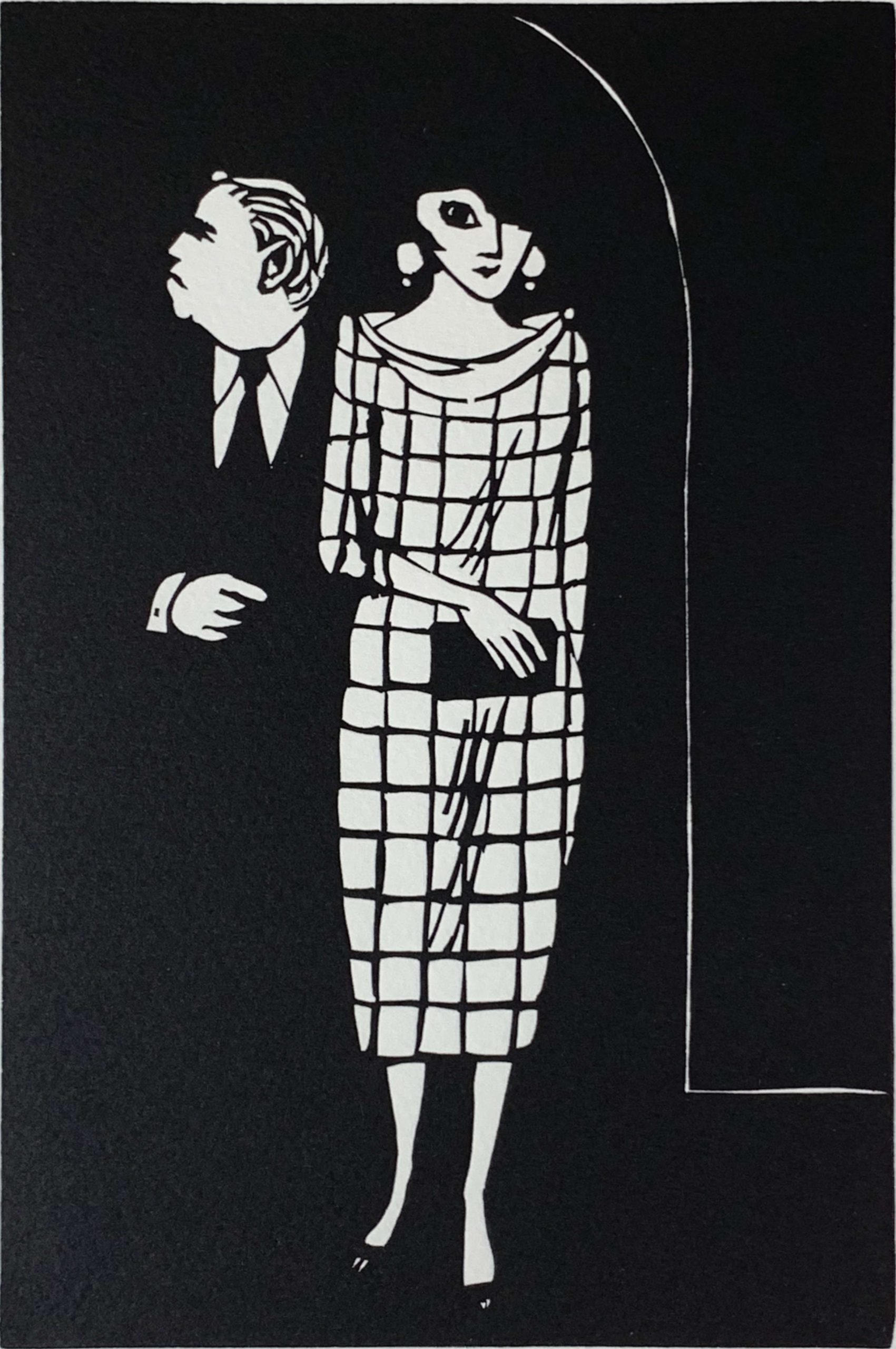 Anabel’s bar was widely considered to be the most elegant club in the London. This is a hyperbolic statement, but it is not hyperbole; it was actually thought of that way. The artist Nicholas Garland sat in the club and sketched the people he saw there. He later created the linocuts which were used to create the prints that formed the Anabel portfolio.