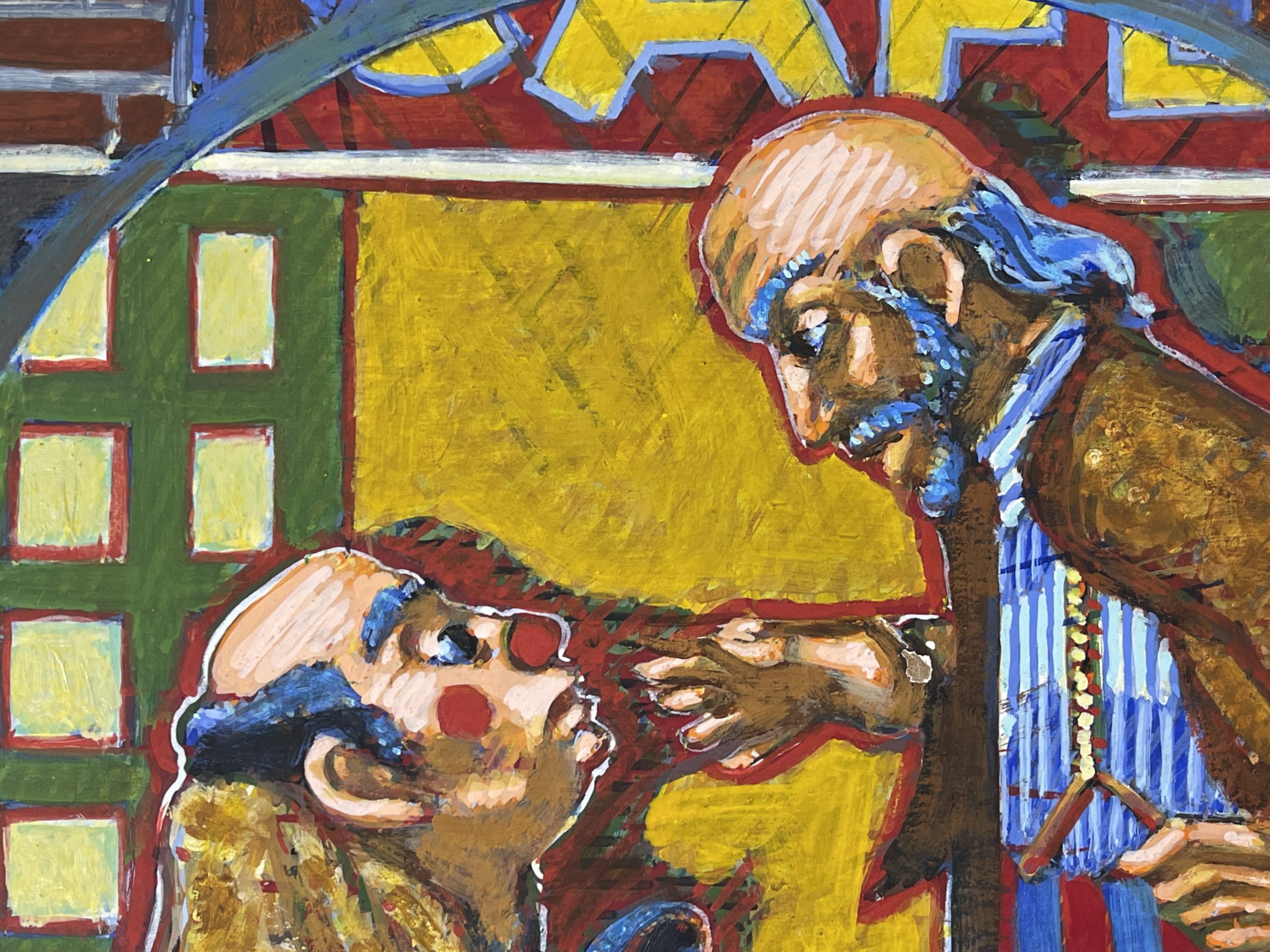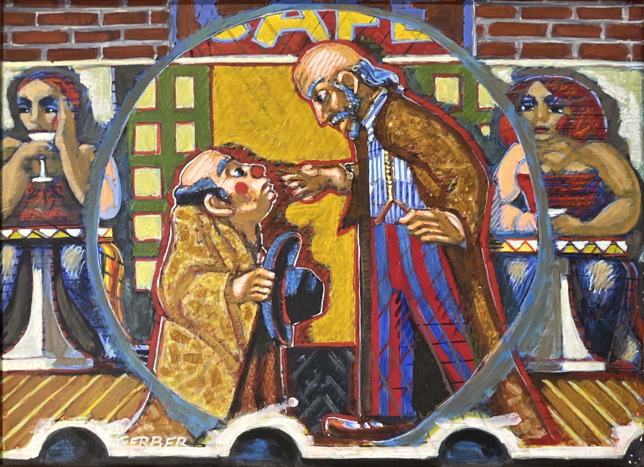 Jack Gerber, based outside of Philadelphia, celebrates The Trocadero Theatre in this painting. The Arch Street Opera House opened in 1870; it was renamed many times until become “Troc Theatre” in 1940 (though it apparently had other names later). It was a burlesque theater for most of its existent. By 1982 the Pennsylvania Opera Theater began mounting productions there–it is likely that it is POT productions that Garber was celebrating in this work. Sadly, the Troc closed in 2019.