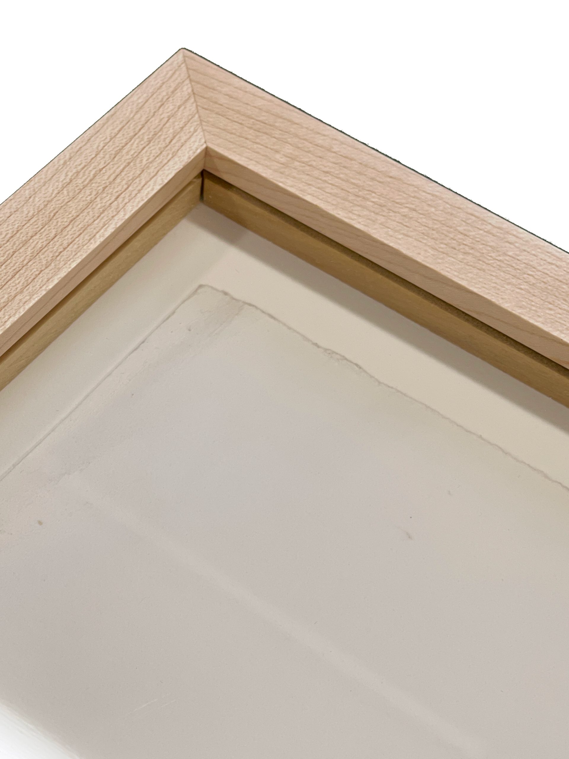 Custom float-framed in a solid Maple frame behind 99% UV-blocking art glass using strictly conservation-grade materials.