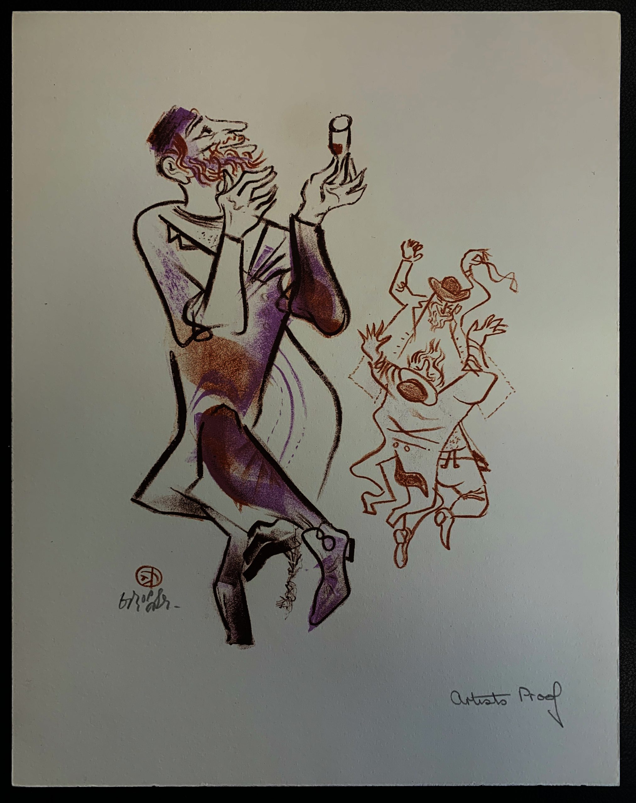 Harkening back to his Jewish roots, William Gropper published in 1970 a series of twenty-four color lithographs on Jewish village life called The Shtetl. Speaking of his work, Gropper wrote, “I react to life and it’s a stimulant to me. It could be a phase, it could be an attitude, it could be a mood. It’s broad. I’m open for any little thing, but I am of a period. I come from a sort of humanistic element. I love people and when I draw or paint, it comes out.”