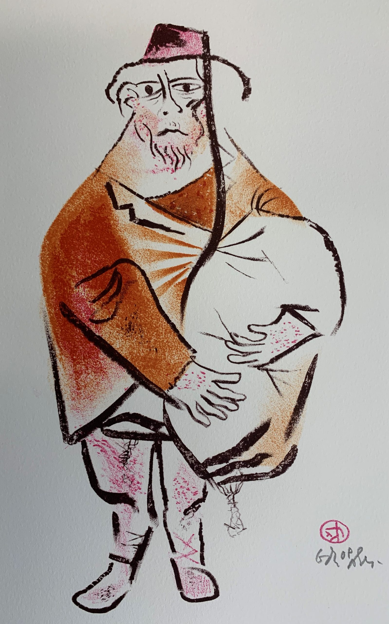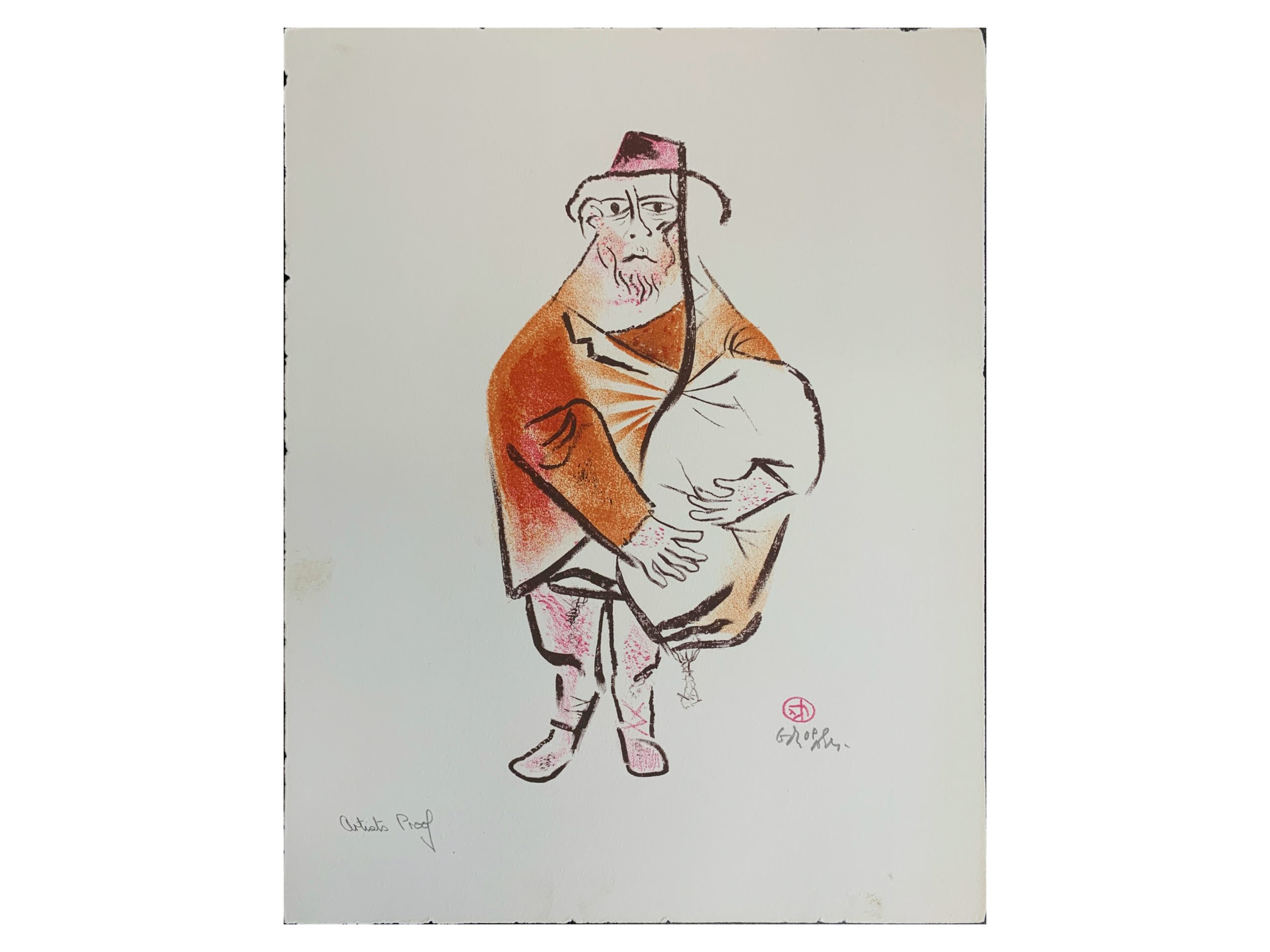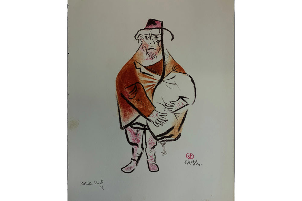Harkening back to his Jewish roots, William Gropper published in 1970 a series of twenty-four color lithographs on Jewish village life called The Shtetl. This series was purchased with the Peter Graham Fund for Radicalism in Literature and Art. Gropper had these remarks on his artwork:
