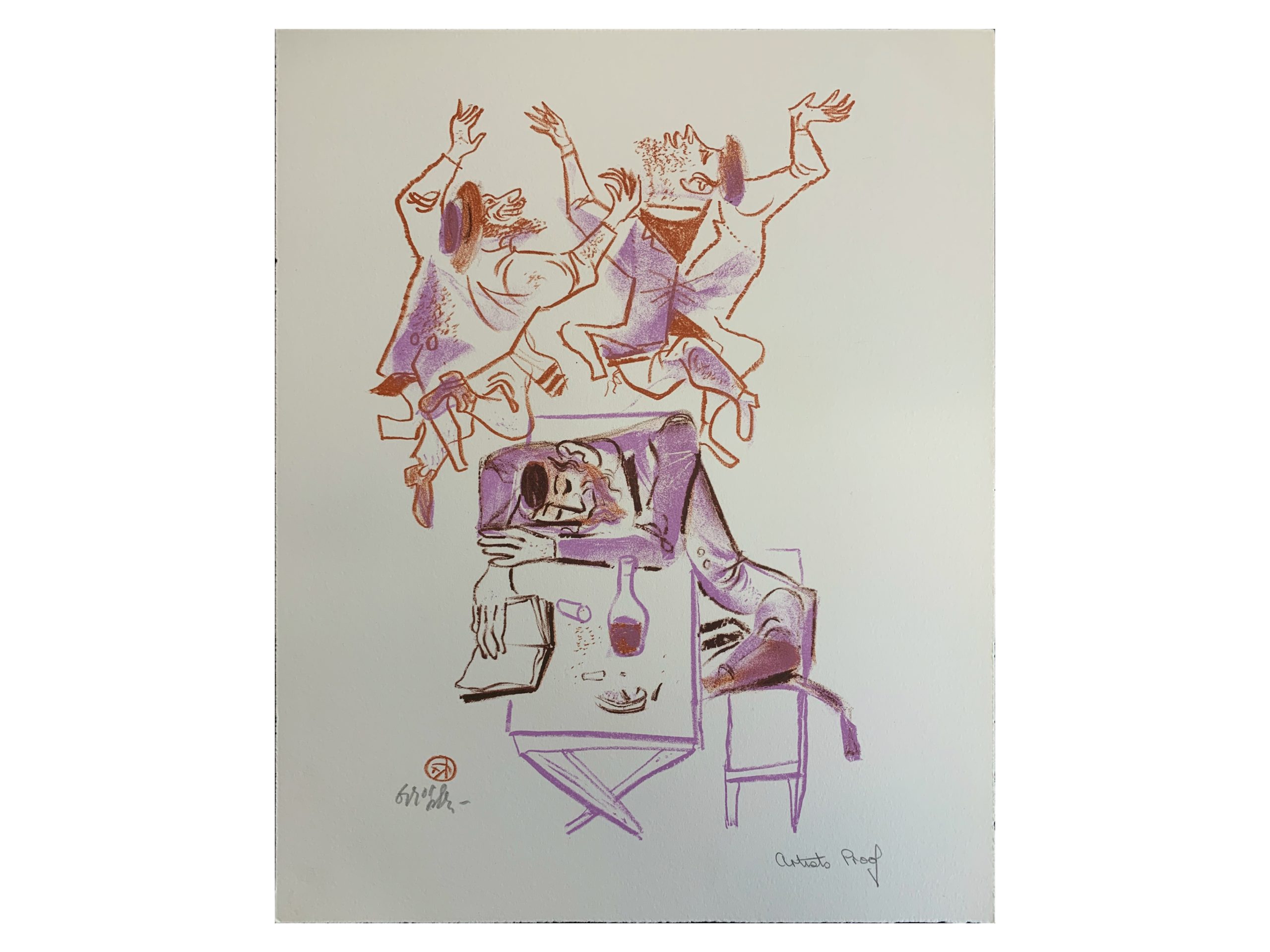 Hand-signed in pencil by the artist with his name and a decorative set of initials en recto lower right. Marked in pencil by the artist’s hand as an Artist’s Proof en recto lower left.