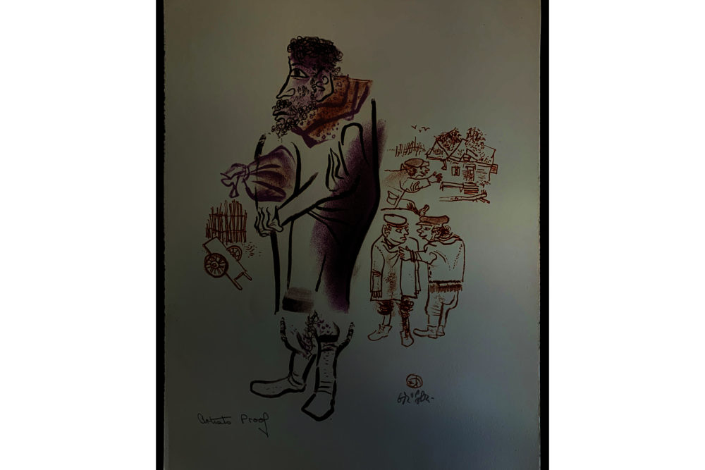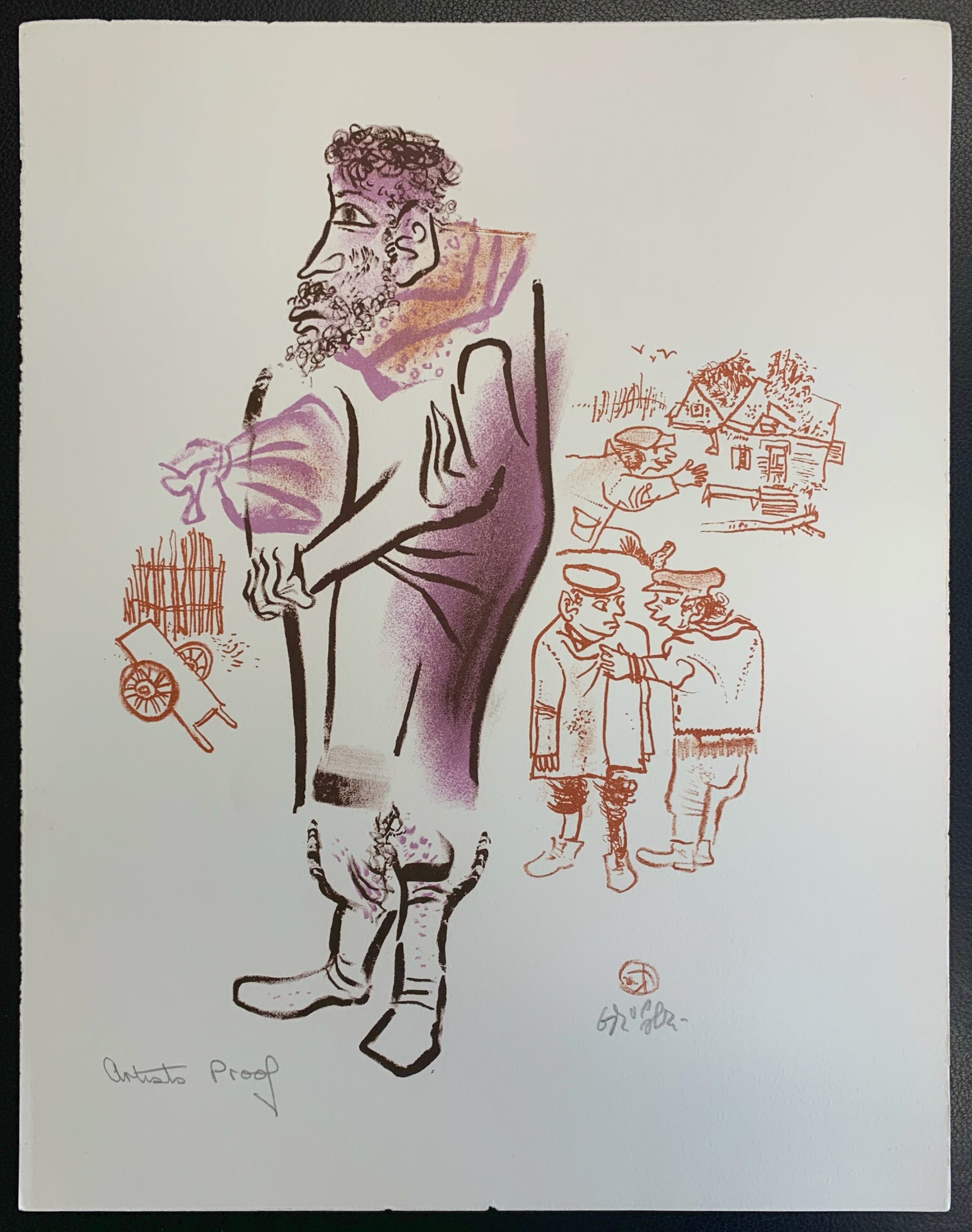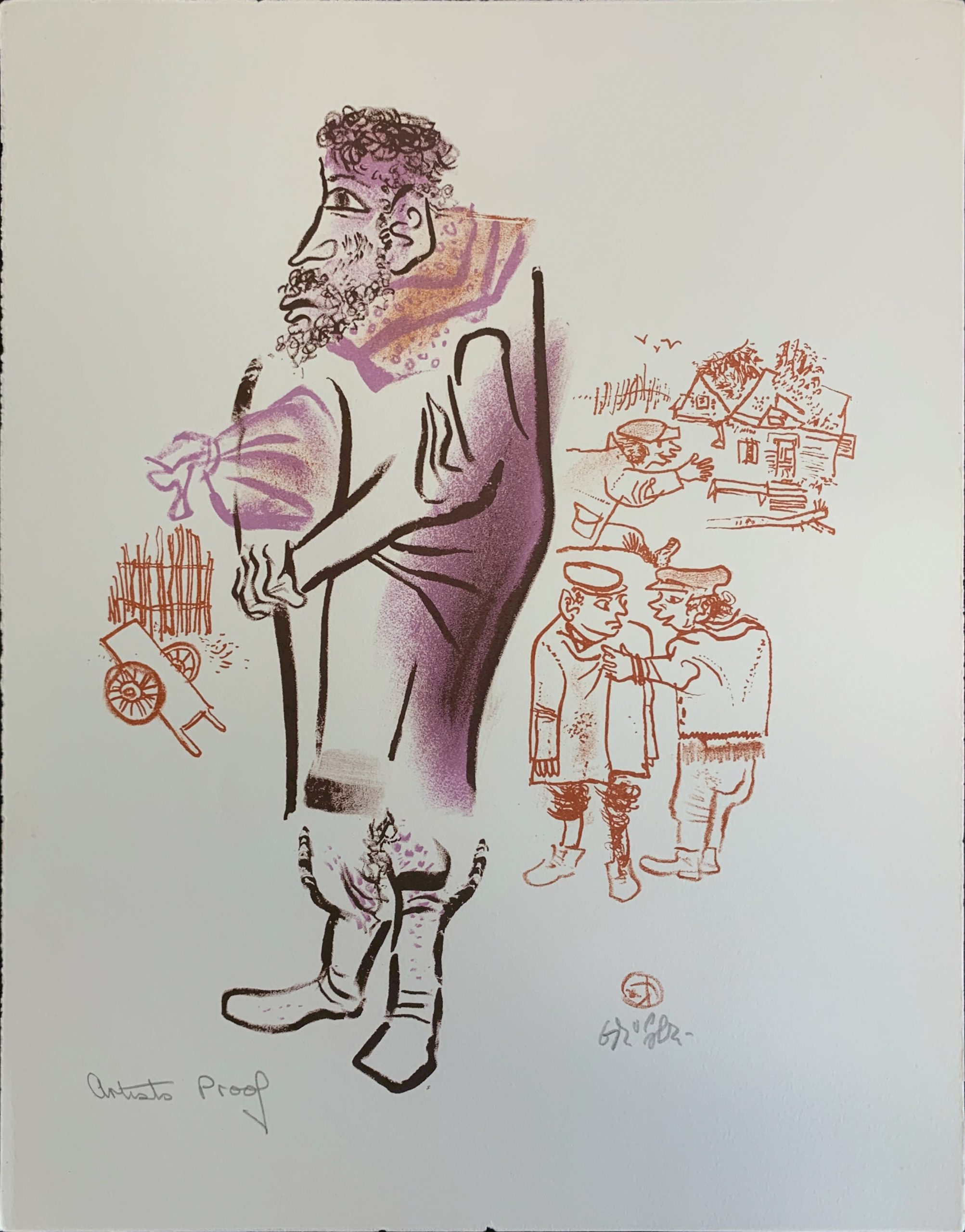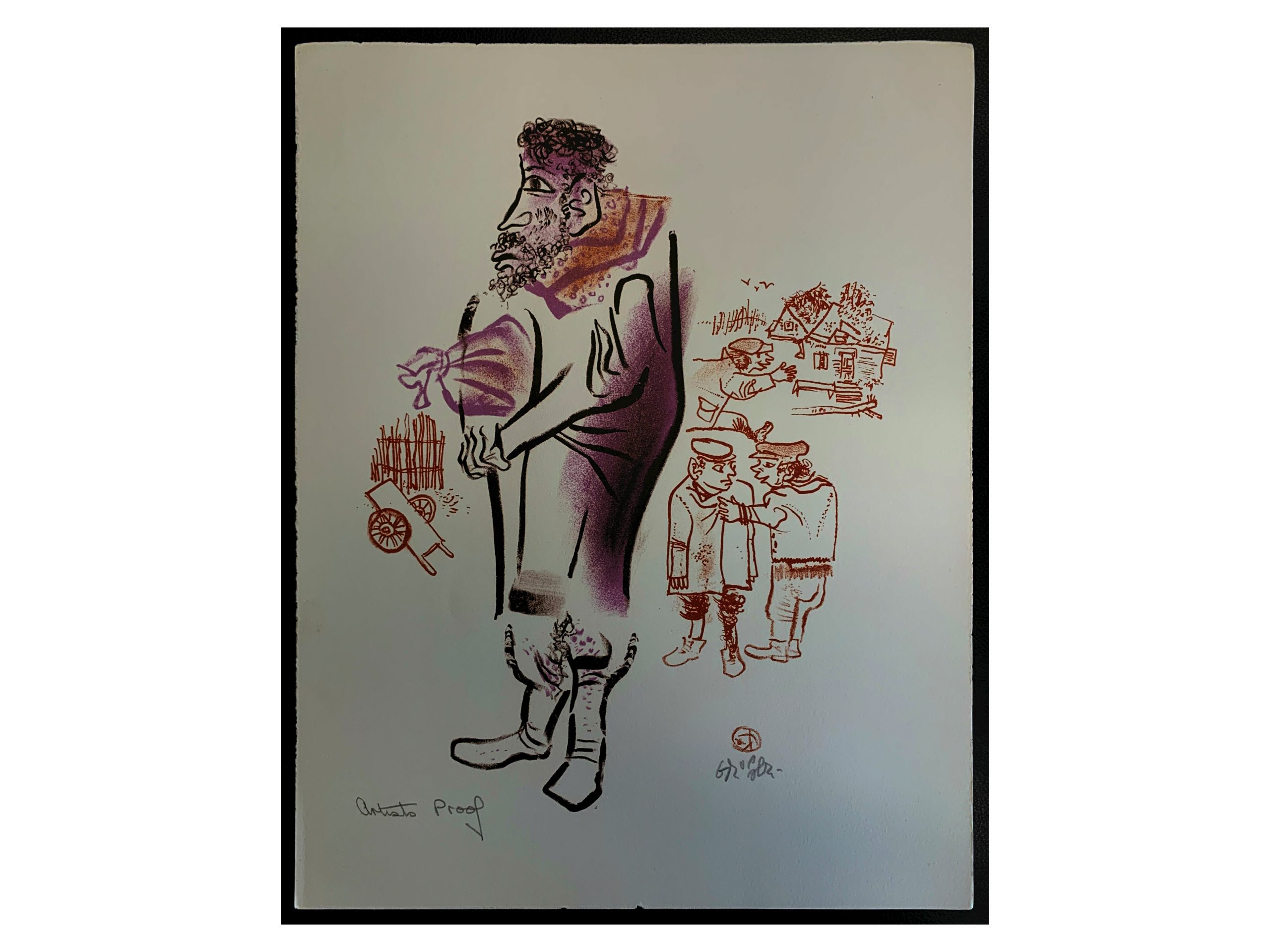 Harkening back to his Jewish roots, William Gropper published in 1970 a series of twenty-four color lithographs on Jewish village life called The Shtetl. This series was purchased with the Peter Graham Fund for Radicalism in Literature and Art. Gropper had these remarks on his artwork: