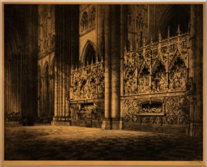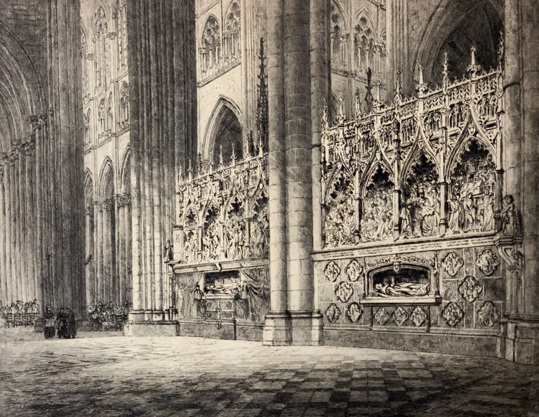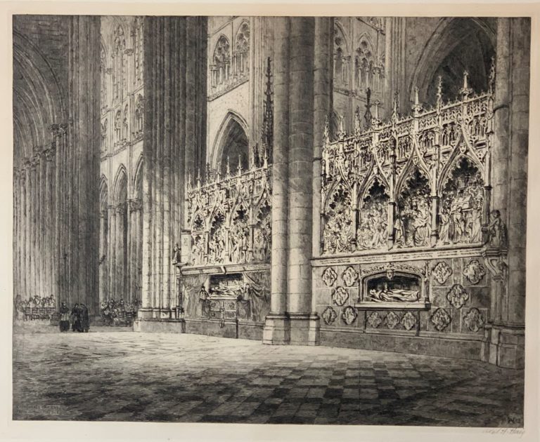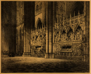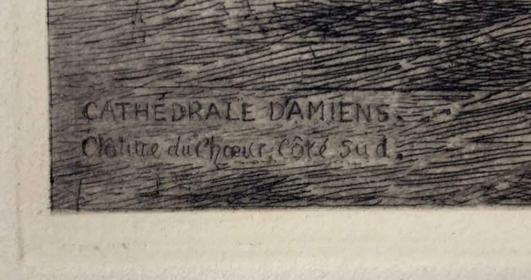 An impression of this etching is held by the Art Institute of Chicago bearing the alternate title, “Choir Screen, South Aisle, Amiens”.