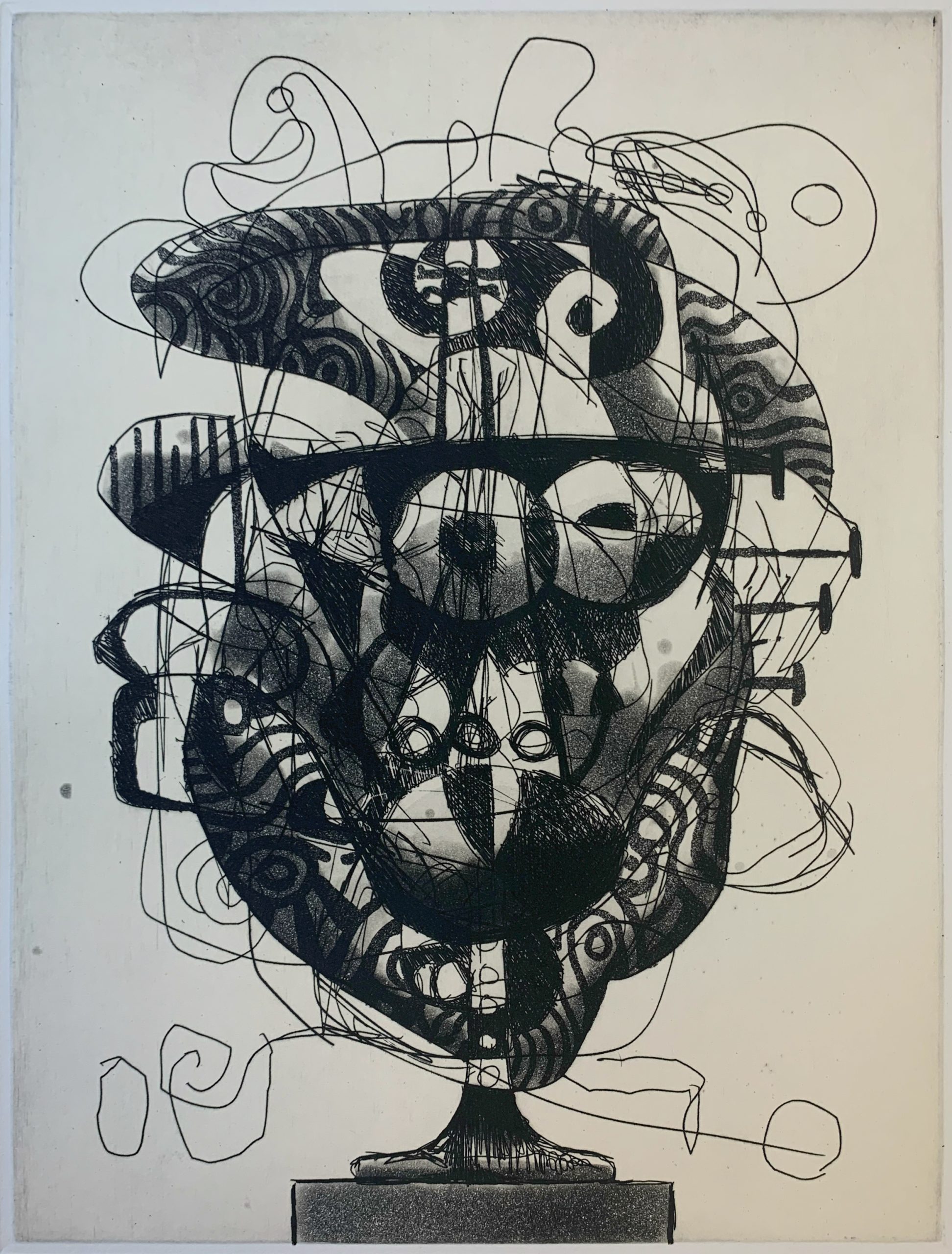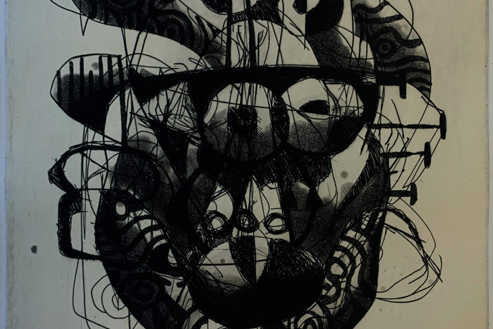 Intaglio print from an etching with aquatint, sugarlift, and spitbite.