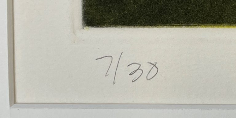 Impression number 7 out of the edition of 30 (but note that the publisher reports the edition as 25). Framing: