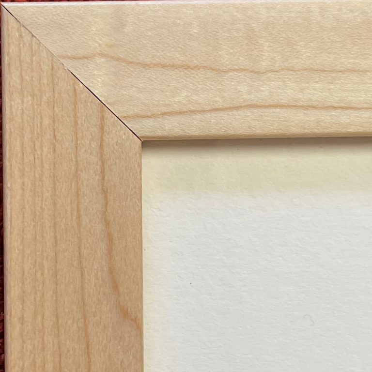 Custom matted and framed in clear-finished maple behind 99% UV-filtering Plexiglass using strictly conservation-grade materials.