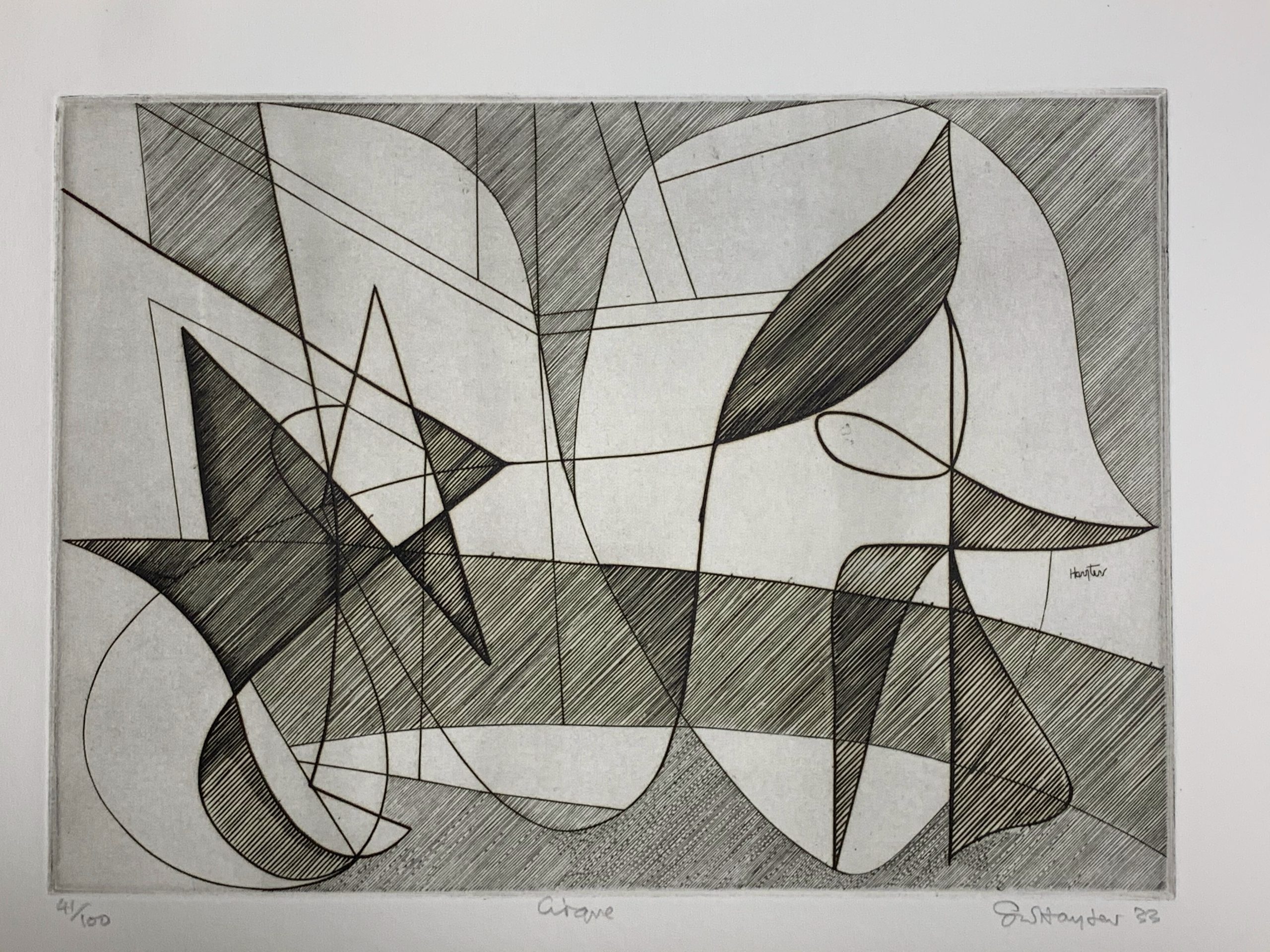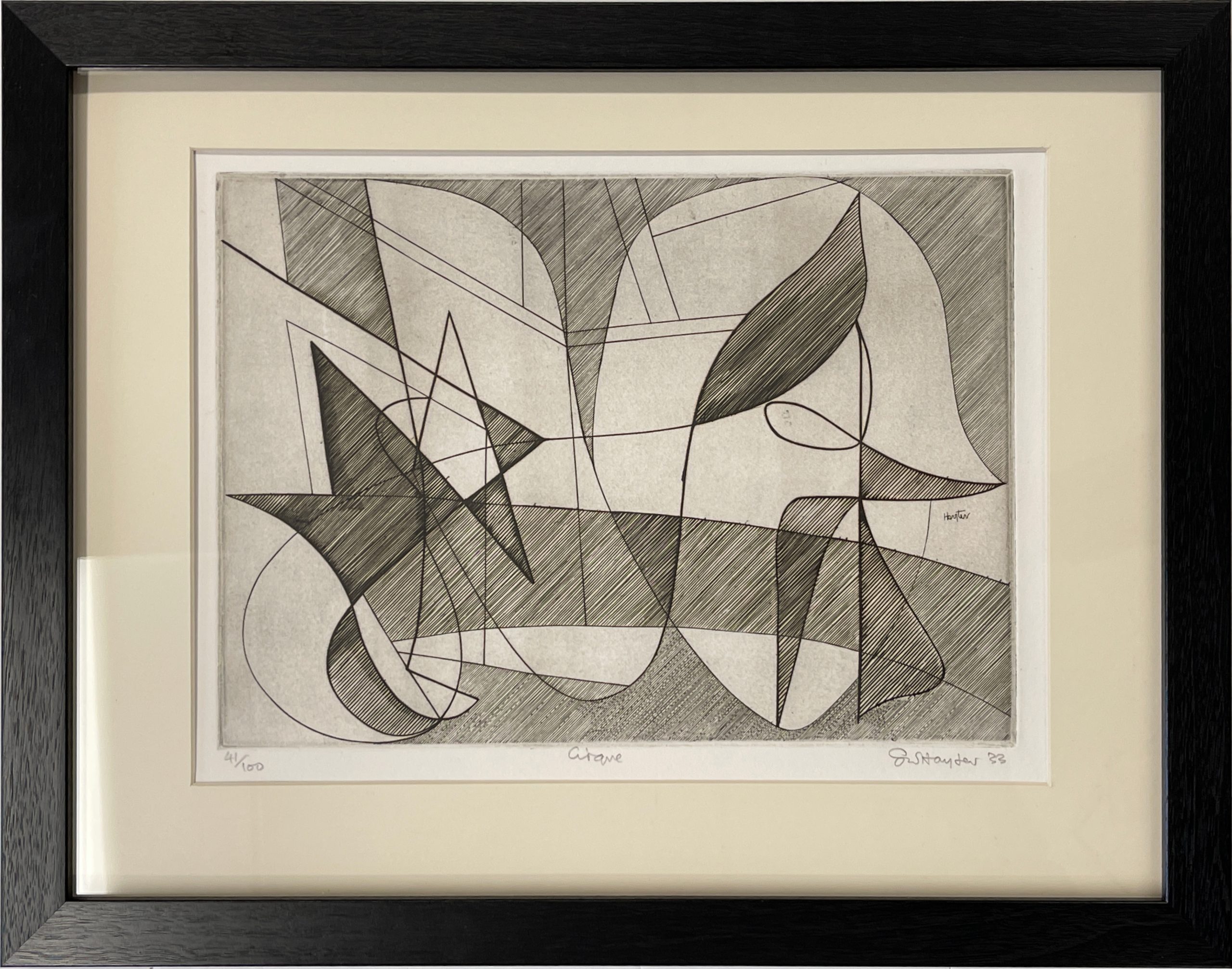 This work by Stanley William Hayter—undisputedly the most influential person in modern Western printmaking—is an Intaglio print made from engraving on a copper plate, printed on paper hand-made by the legendary (and now shuttered) Barcham Green paper mill.