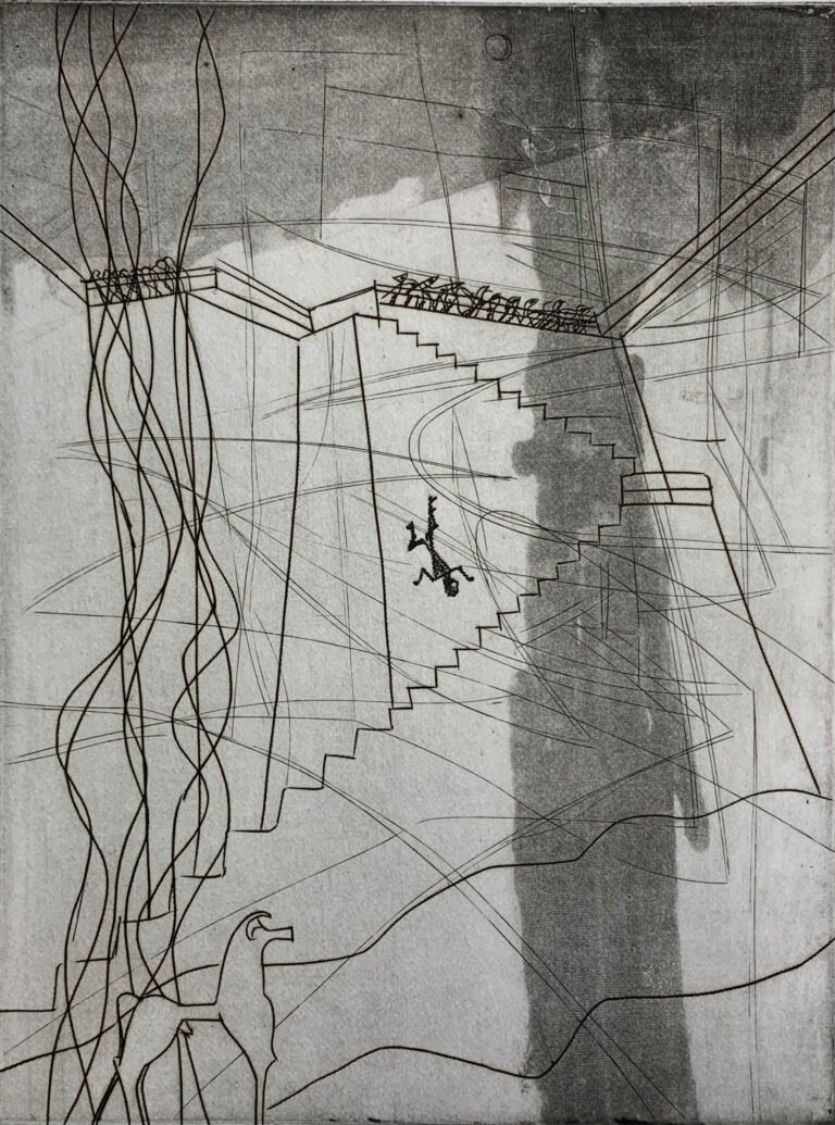Astyanax, an Intaglio engraving, the penultimate of the nine intaglios by Stanley William Hayter that illustrate the book-length poem Death of Hektor by Irish poet Brian Coffey.