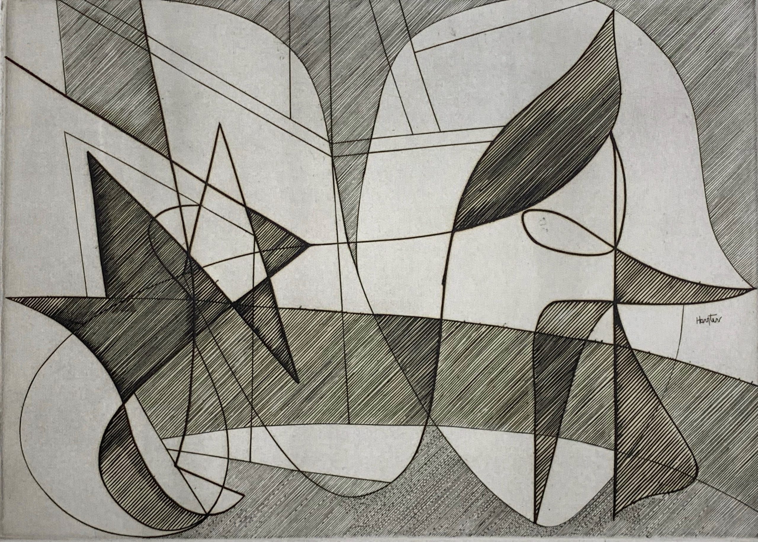 This work by Stanley William Hayter—undisputedly the most influential person in modern printmaking—is an Intaglio print made from an engraving on a copper plate. It bears the alternative title Circus.