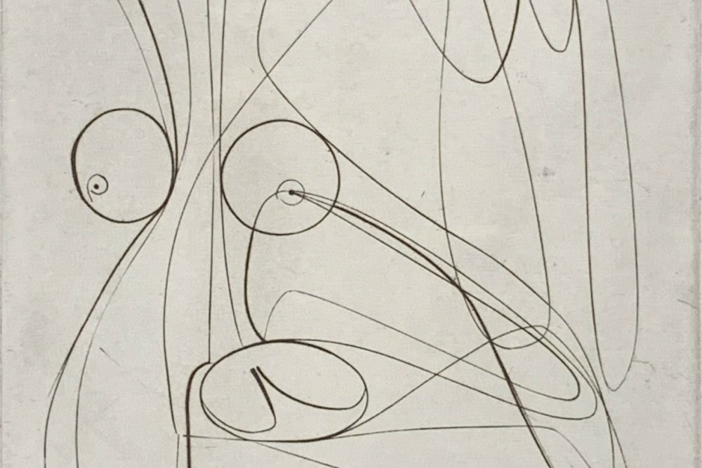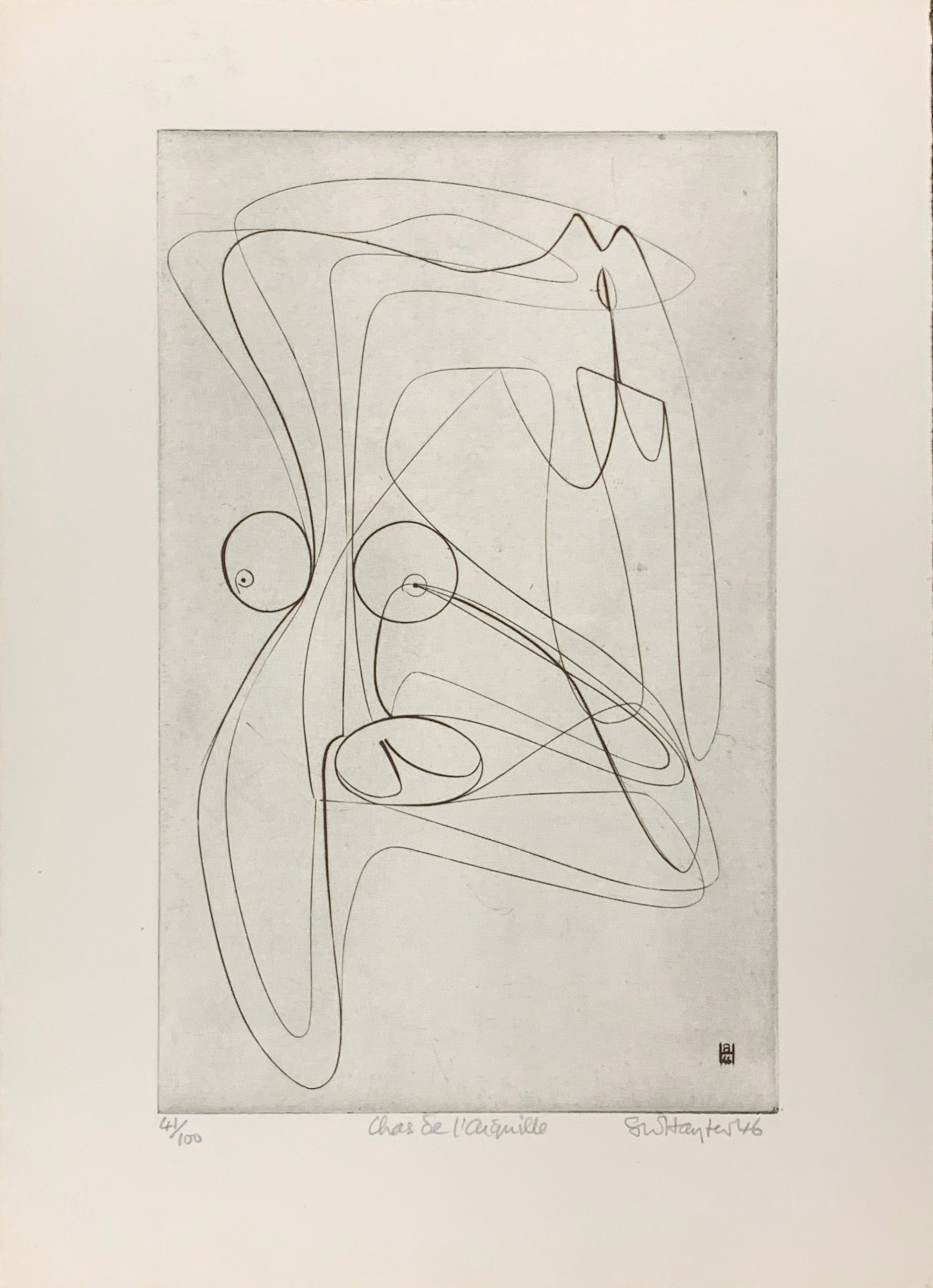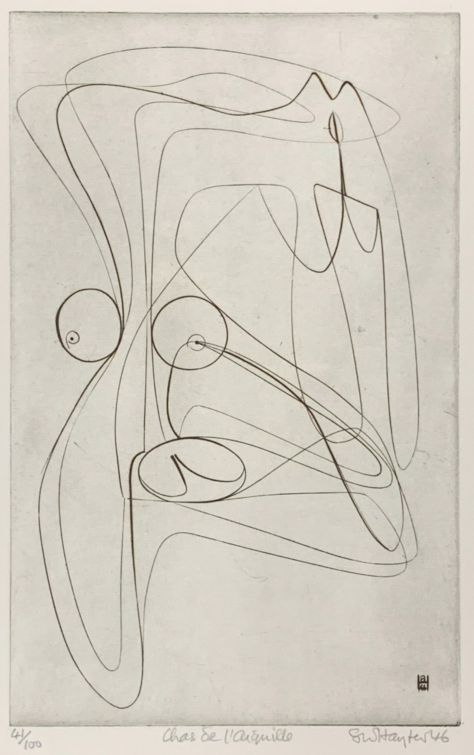 This work by Stanley William Hayter—undisputedly the most influential person in modern Western printmaking—is an Intaglio print made from engraving on a copper plate.
