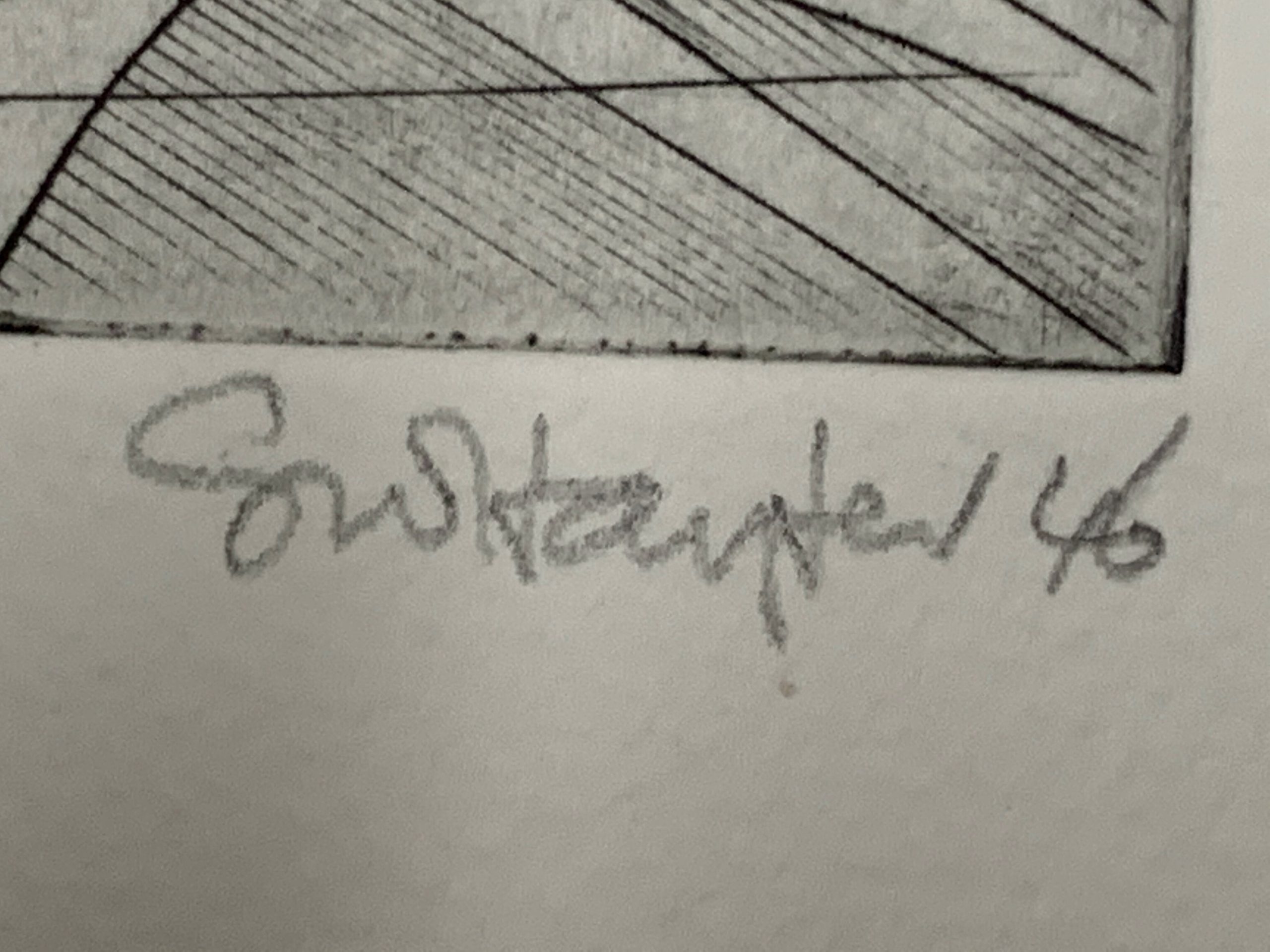 This engraving was previously printed in an edition limited to 30 on various papers.  The edition was completed on March 1, 1973.  The plate was cancelled after the 1973 edition by engraving a signature which prints in reverse.
