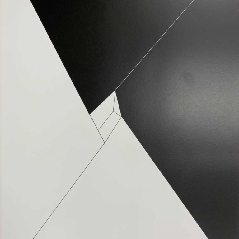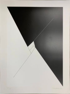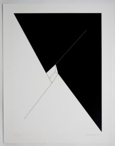 Charles Hinman is famous for blurring the distinction between painting and sculpture. This work is of course two-dimensional, but he creates the impression of three-dimensionality through line and planes of solid black.