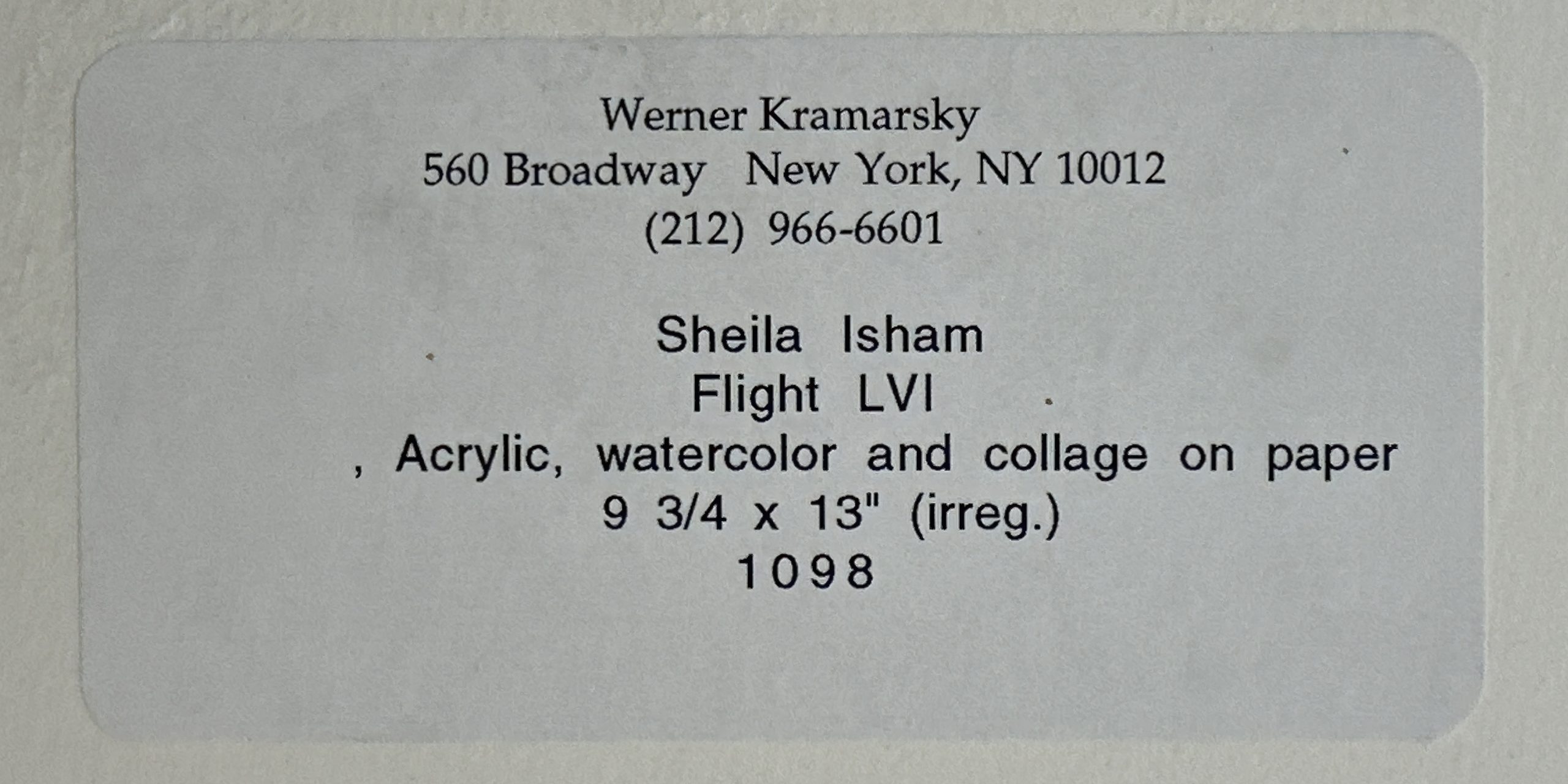 Bright colors, layered paper and paint, flowers, mood and expression . . . classic Sheila Isham. Conservation-framed in a solid whitewashed Maple frame behind 99% UV-blocking and non-glare Museum Glass. Bearing the Werner Kramarsky New York, NY label, verso.