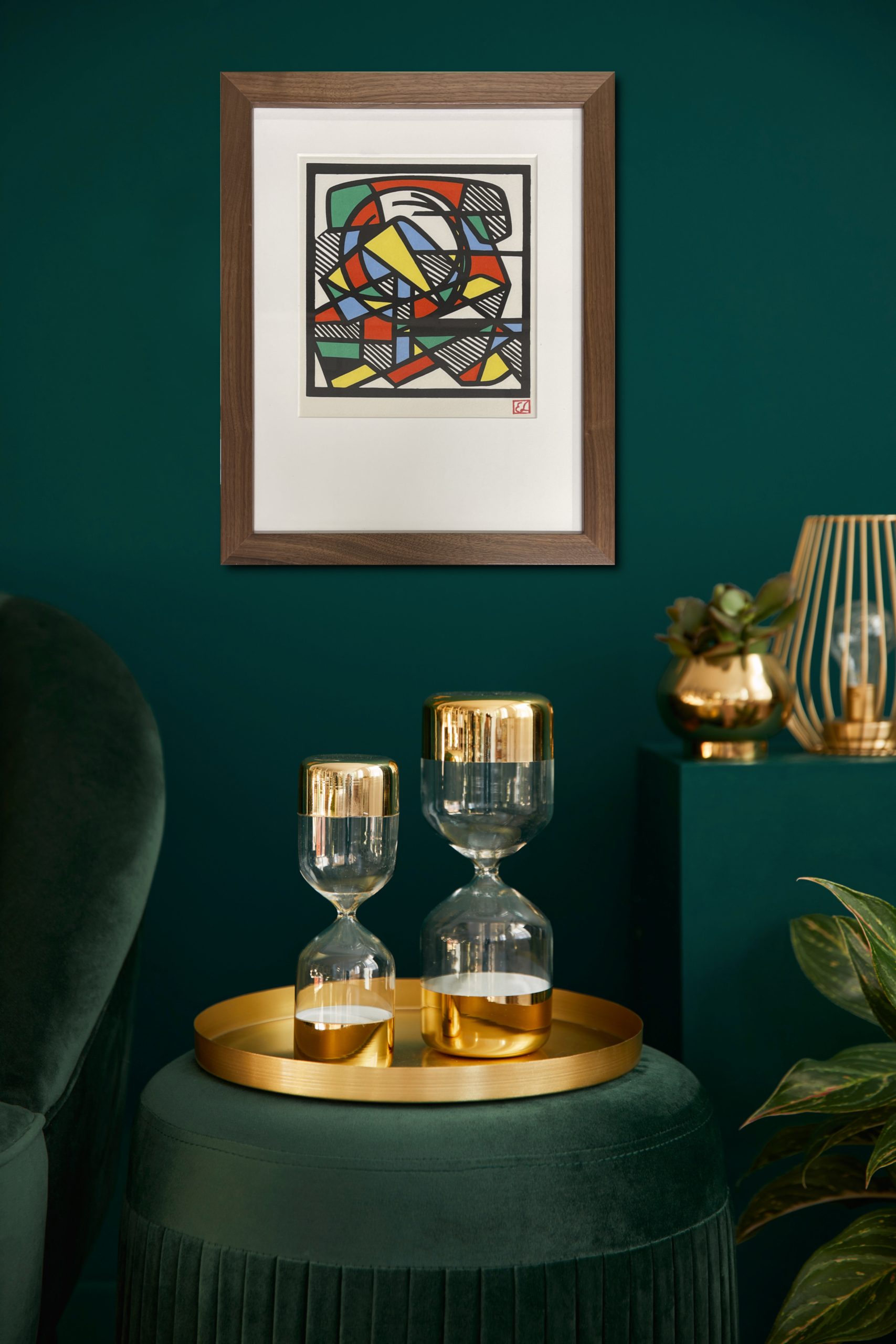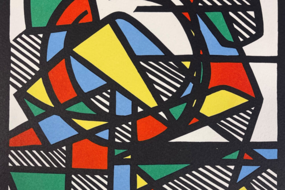 Emile Lahner painted portraits and landscapes in the first decades of his work, often in the cubist fashion. He had an exhibition at the prestigious Galerie Jeanne Castel in 1950, sponsored by the French writer Marcel Sauvage. In the preface to the catalog, Sauvage compared Lahner’s work to stained glass. This was prescient: Just a few years later, Lahner was asked to design a chapel in a small Algerian city. As part of that project, Lahner designed the chapel’s stained glass windows. (Interestingly, there was at that time a sort of mania over chapel construction: Picasso at Vallauris; Matisse at the Dominican Chapelle du Rosaire at Vence; Jean Cocteau for frescoes in Villefranche; Rouault for the church windows in Plateau d’Assy; Léger for the windows in Sacre-Coeur, Audincourt; and Chagall for stained glass in the cathedrals of Metz, Reims, and Rouen.) That work marked an important stop on Lahner’s journey to abstraction and it is impossible to look at “Harpsichord” without thinking of stained glass.
