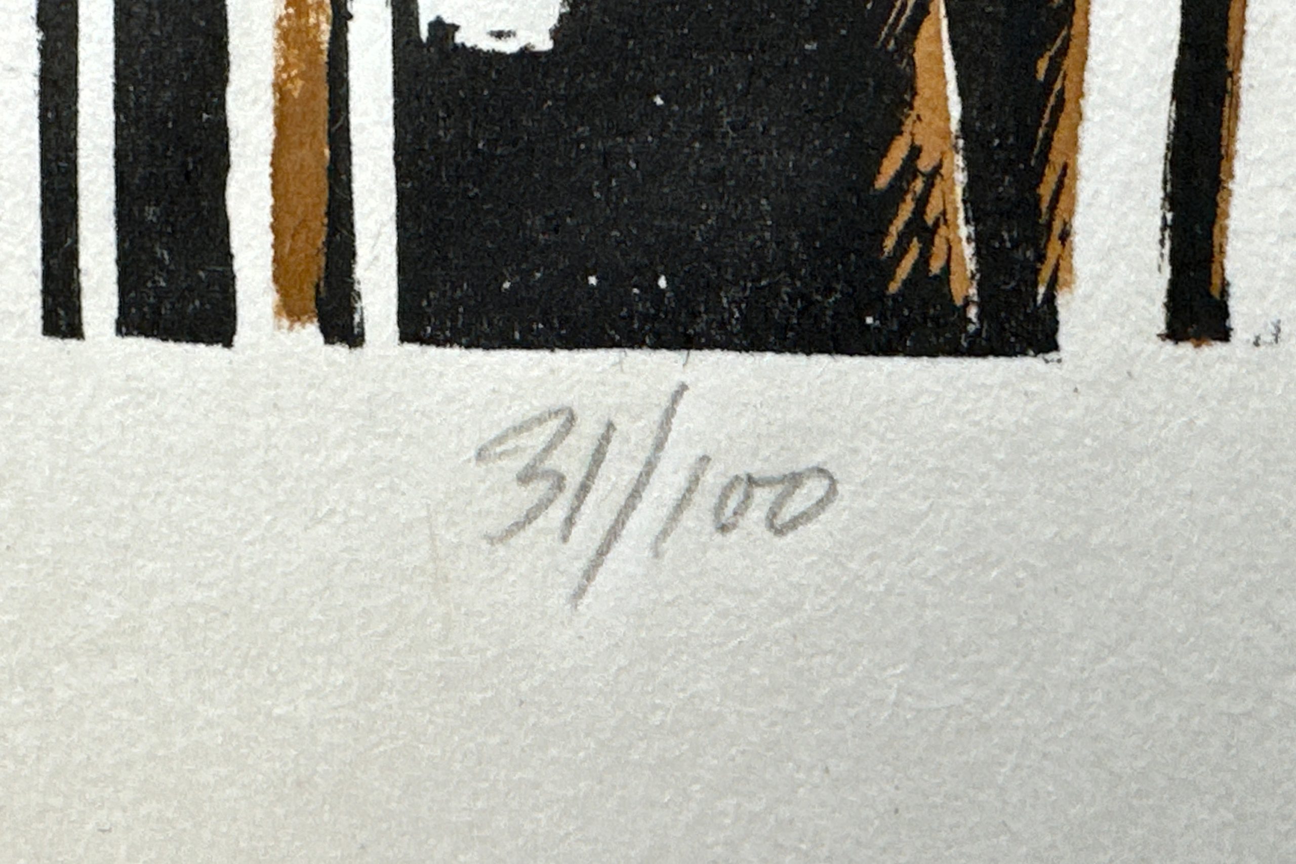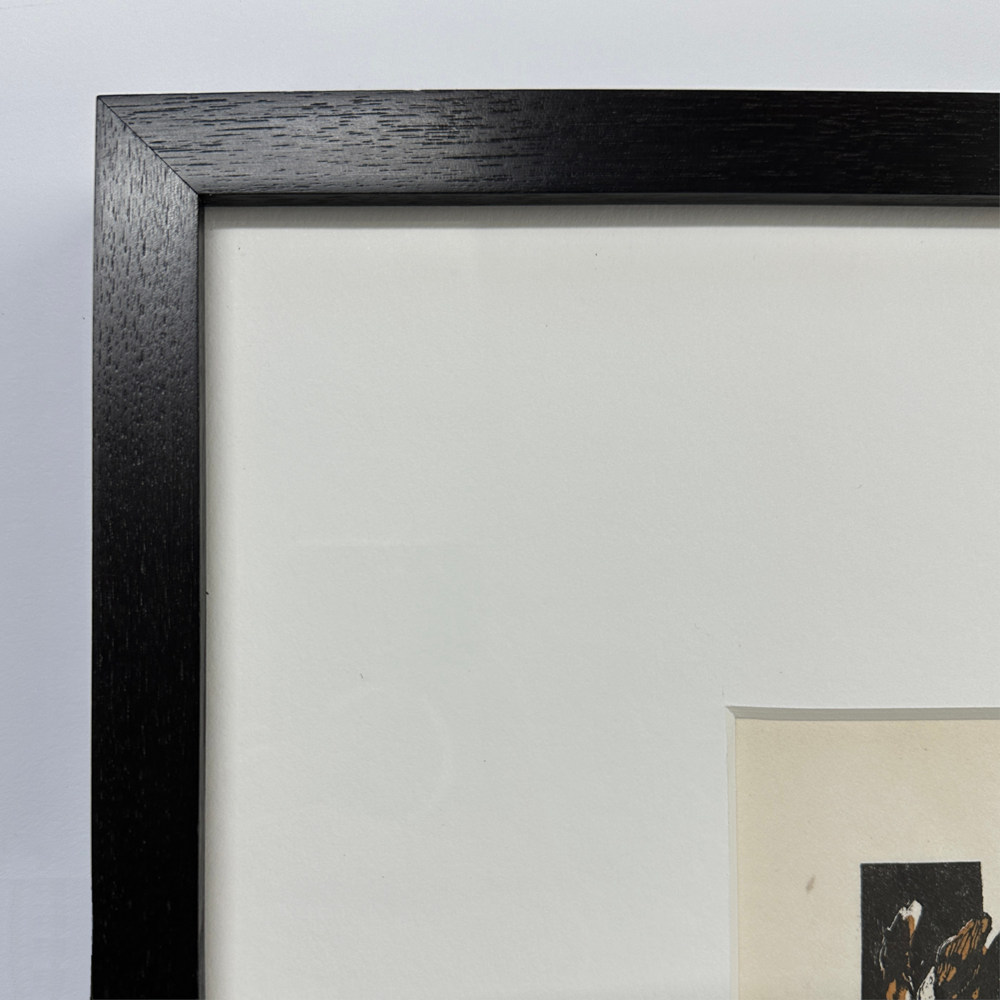 We have custom framed this work in an ebonized Walnut frame behind 99% UV-blocking art glass using strictly conservation-grade materials.
