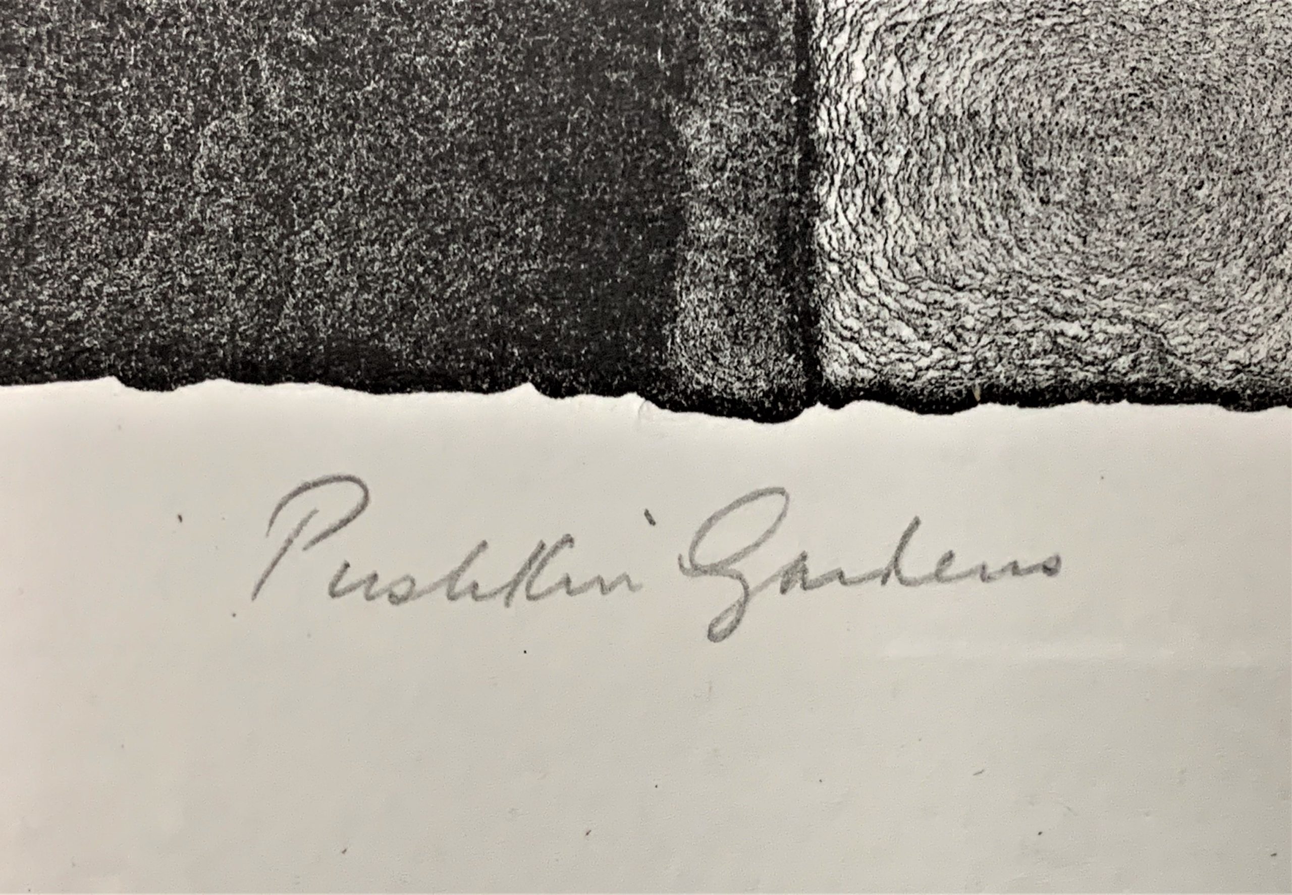 Hand-signed in Pencil by the artist en recto lower right. Titled in pencil by the artist en recto center. Numbered in pencil by the artist en recto lower left.  Bearing the blindstamp of Tamarind Institute.