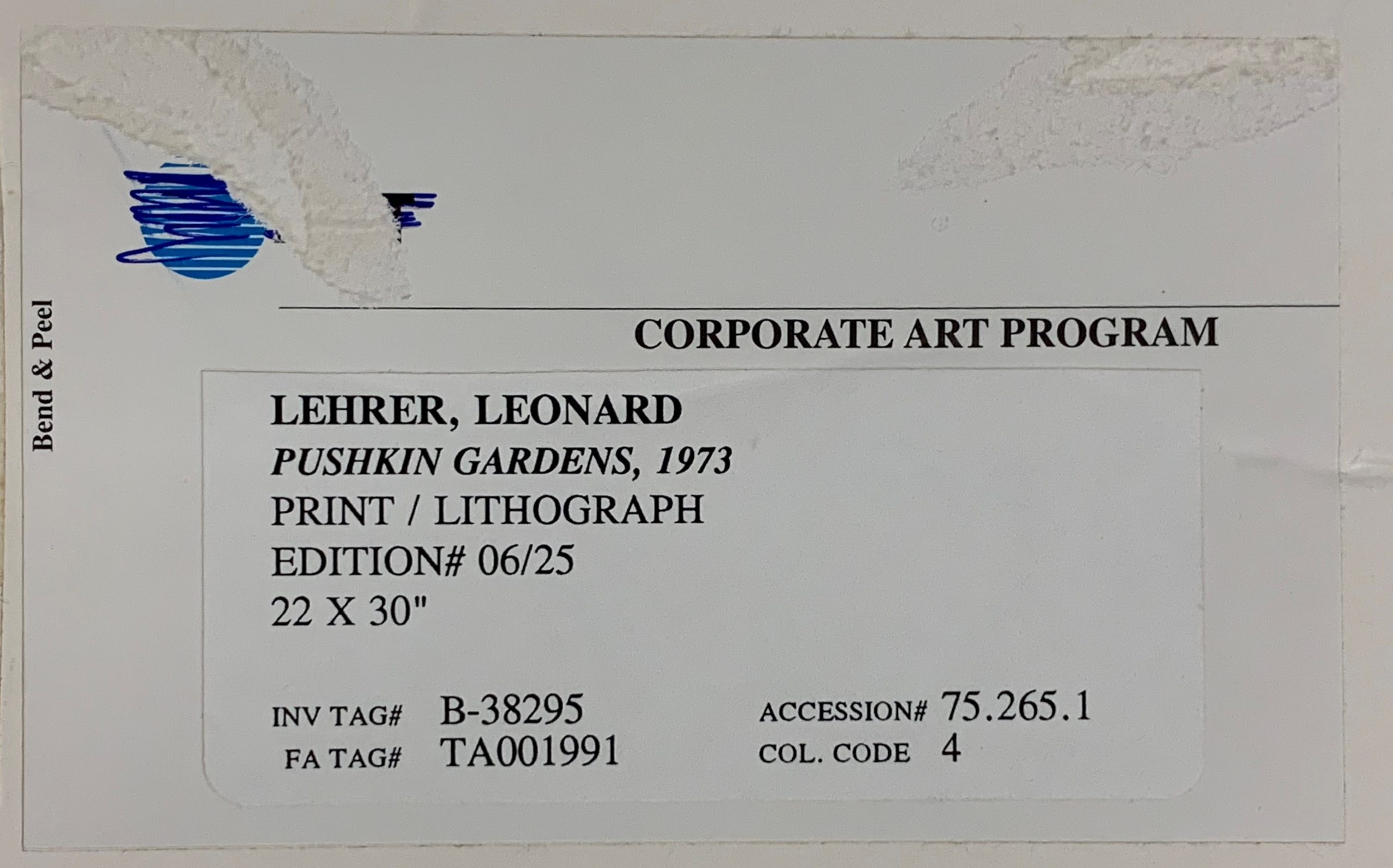 From the artist through the Marian Locks Gallery to the corporate art collection of AT&T, then purchased by the Washington Color Gallery.