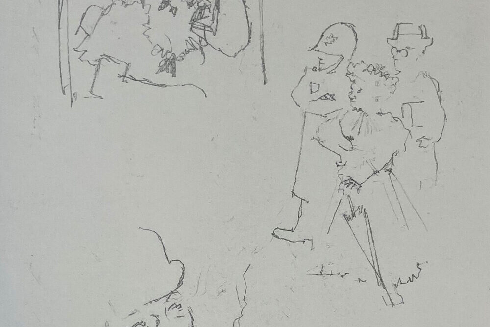 Berthold Brecht’s 1930 film Dreigroschen [The Threepenny Opera] introduced the world to the great musical standards “The Ballad of Mack the Knife” and “Pirate Jenny”, among others. More than that, it was a biting socialist critique of the capitalist world, and in that regard it resonated with Jack Levine, one of the great social critic artists in the mold of Philip Evergood, Leonard Baskin, and George Gropper. Levine was inspired by Dreigroschen—and his memories of truancies from school, occasions in which he would tour the erotic temptations of Boston—to make a suite of pictures, of which this etching is the 13th plate.