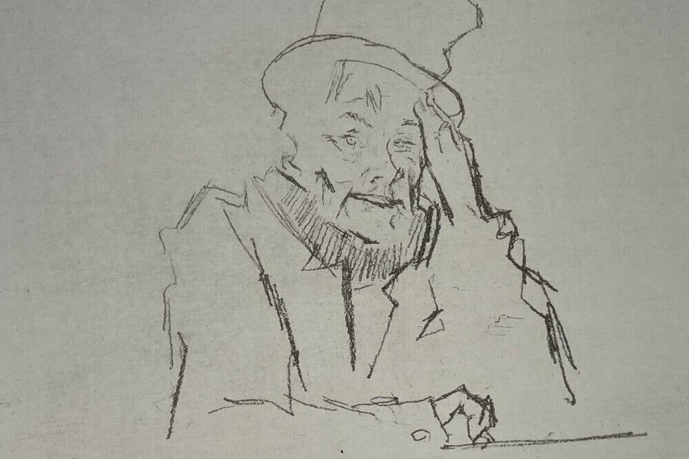 This print is a soft ground etching, made by using a softer and stickier waxy ground than is normally used in etching. Depending on the smoothness of the paper used to make the etching plate, the lines of the print can resemble pencil, chalk, or pastel, and generally are soft and somewhat irregular. Levine used the technique to great effect in this print, yielding a rough and broken line perfectly matched to the seamy characters portrayed in this series of etchings.