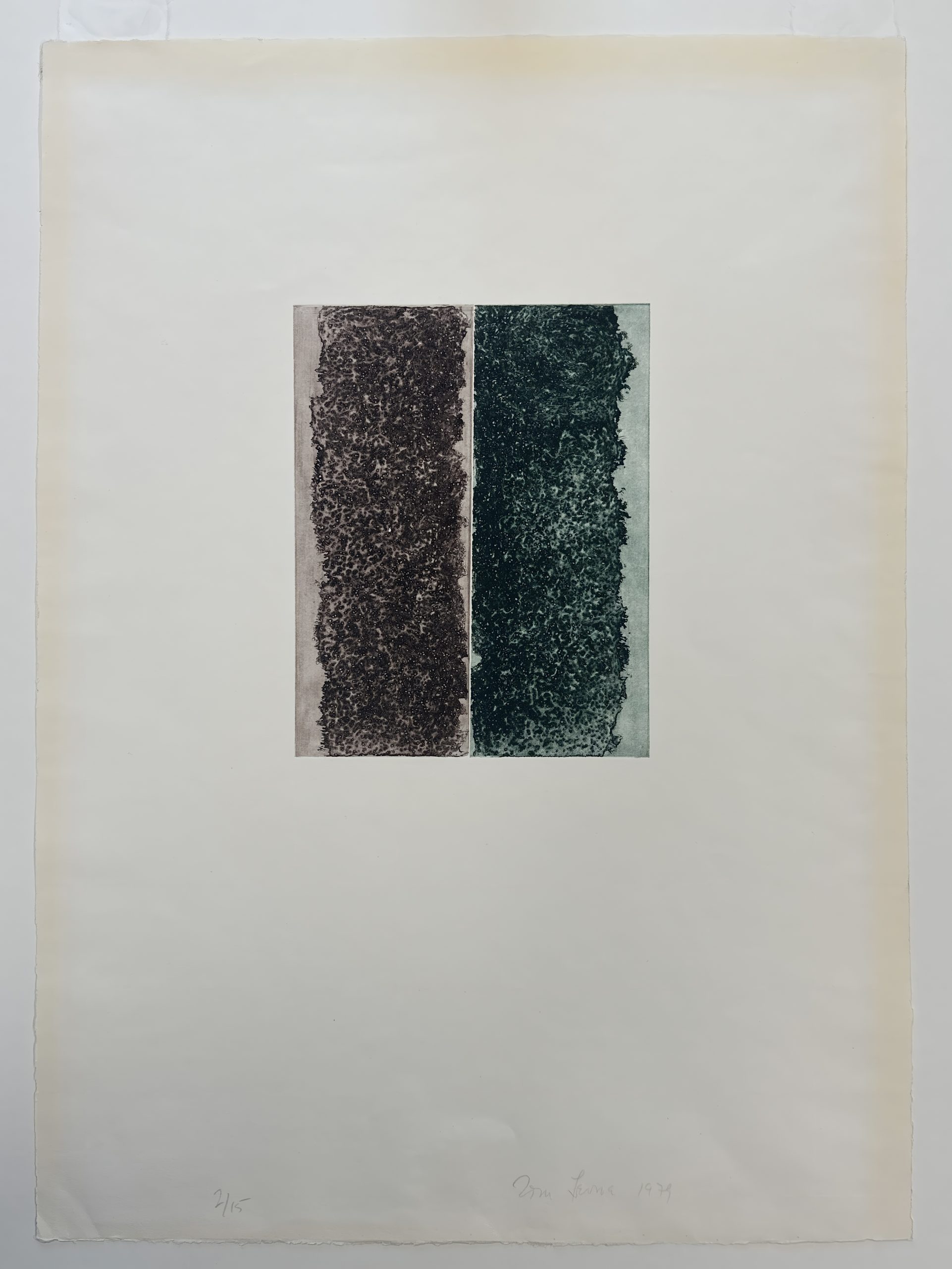 A pure example of Levine’s minimalism, incorporating the patterns, dots, color that were the hallmark of his main body of work.