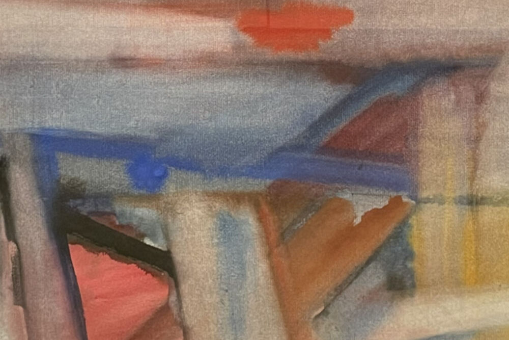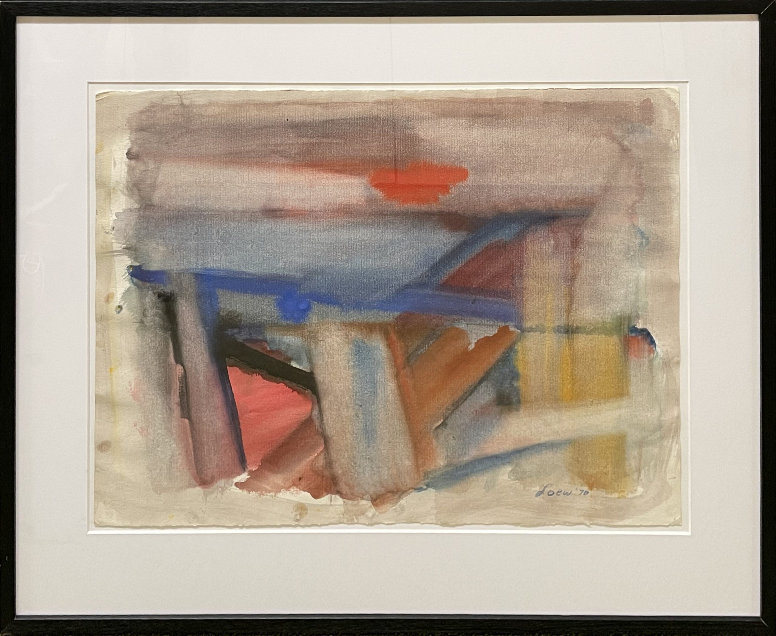 This watercolor shows Loew at his best. His use of colors across the palette—dark and brooding and soft and pastel—creates evocative and compelling works. Loew is one of few abstractionists who paint abstractions of real items, though that is not always entirely clear to the viewer.