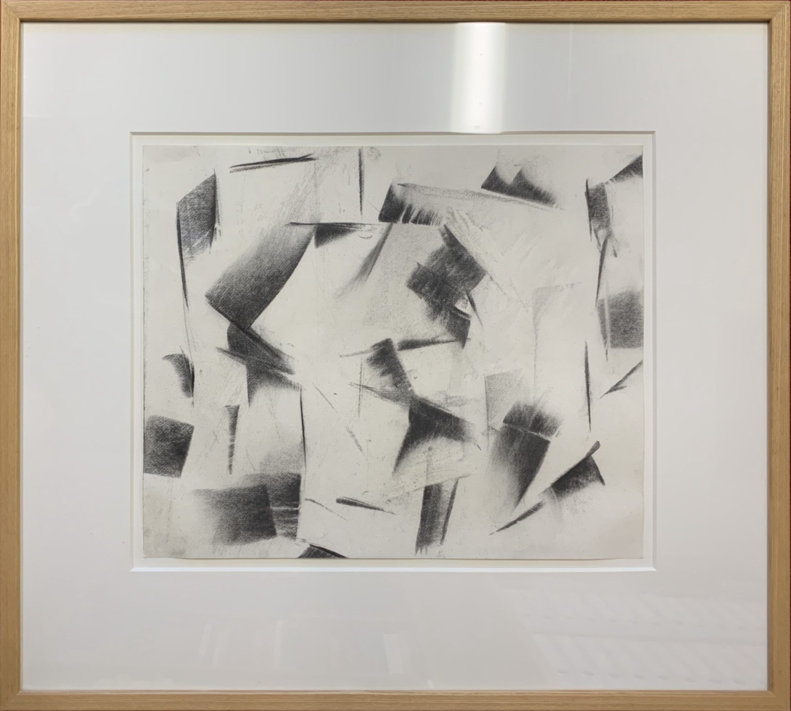 Michael Loew started his art career painting portraits and depictions of urban life. But after serving in the Navy during World War II, he lost interest in representational work and moved full-tilt to abstractionism. He then spent the next forty years teaching and painting abstract works. This picture is a rare instance of Loew working with charcoal.