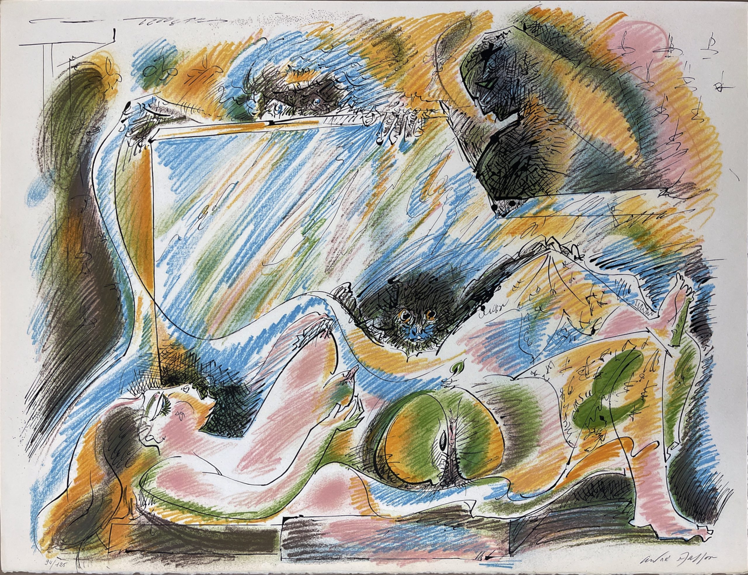Lithograph In Colors On White Arches Wove Paper
