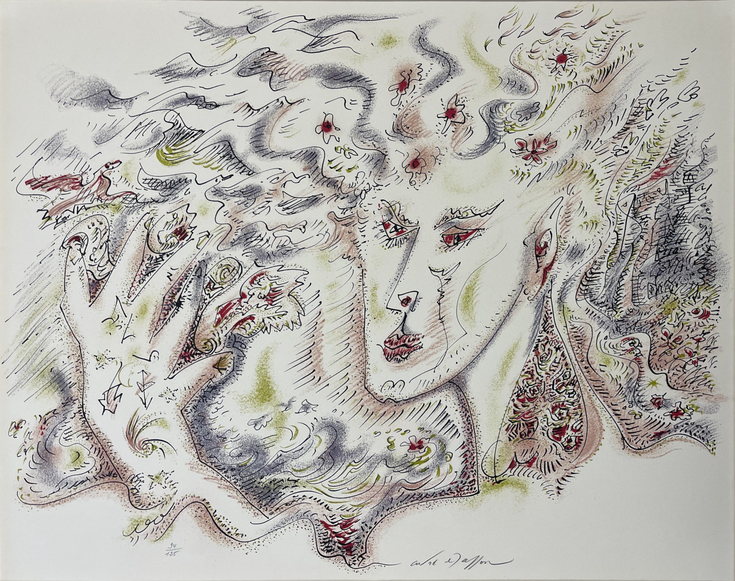 Original Stone Lithograph In Colors On Ivory Arches Wove Paper