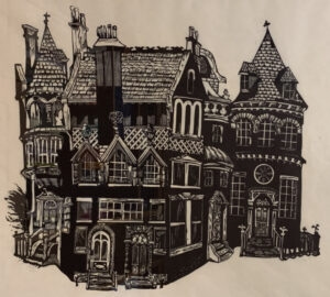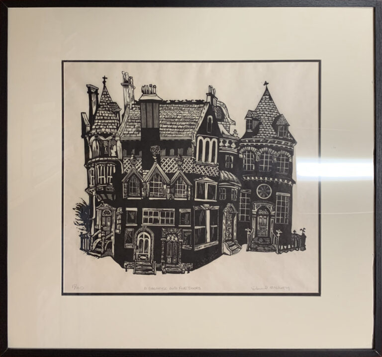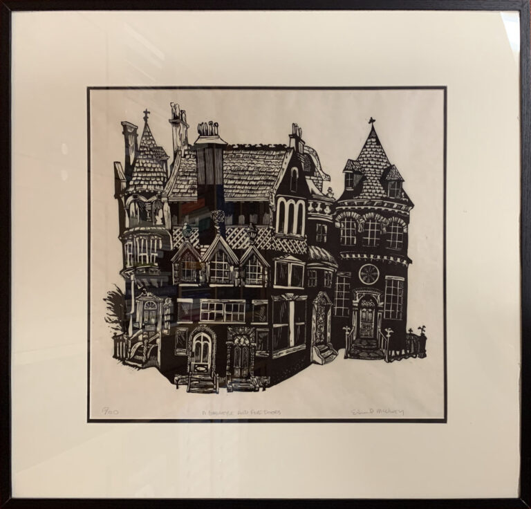 Custom matted and framed in a black-stained solid Ash frame behind 99% UV-filtering Plexiglass. All conservation materials.