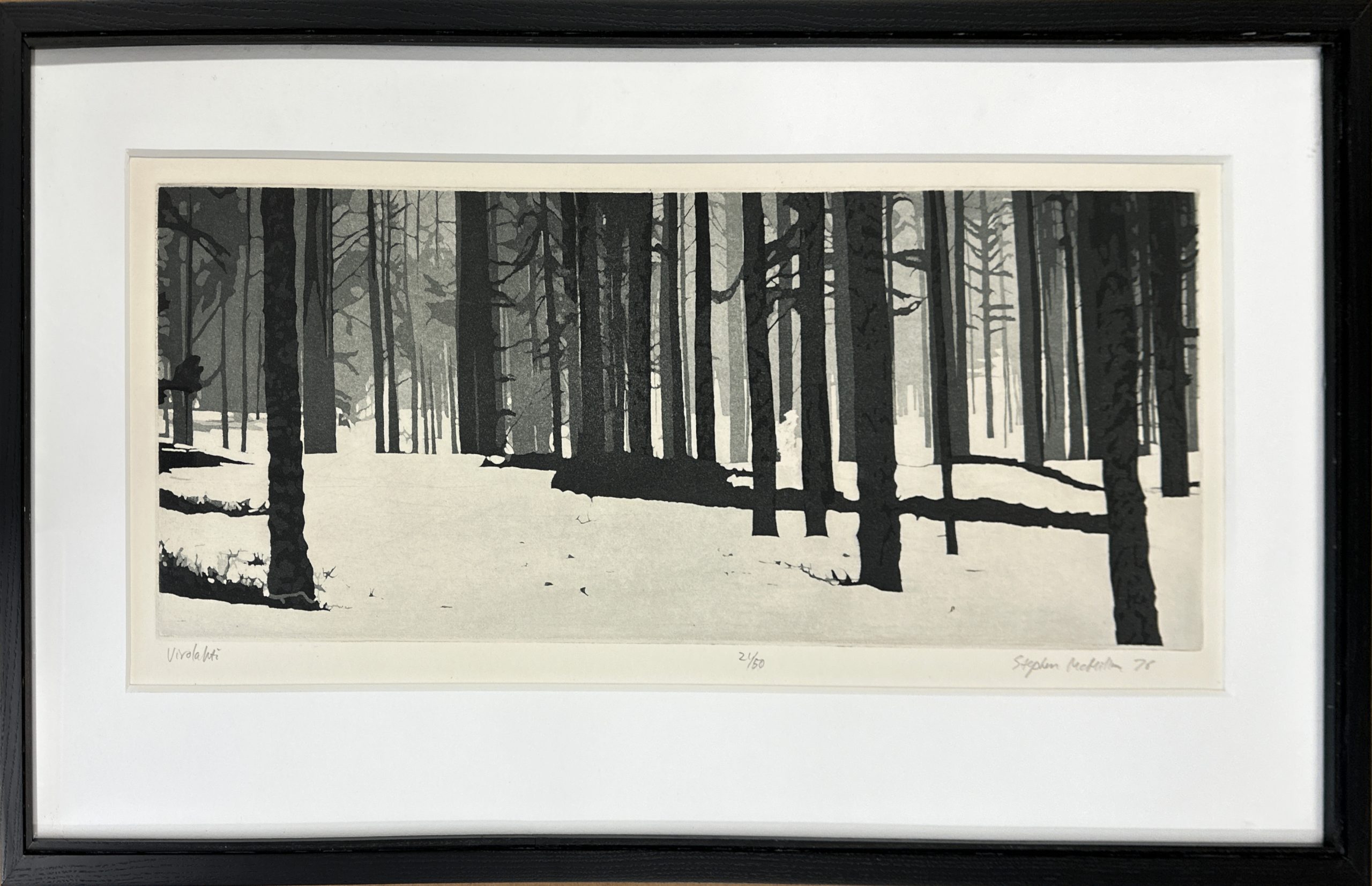 This etching depicts the city of Virolahti on the southeastern edge of Finland, bordering Russia. It is a lightly-populated area, one-third of which is lakes and rivers.