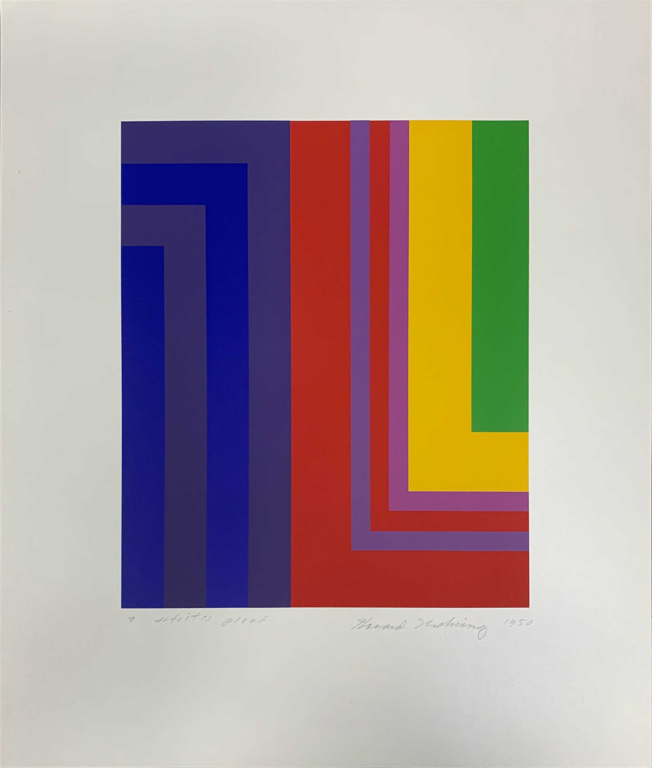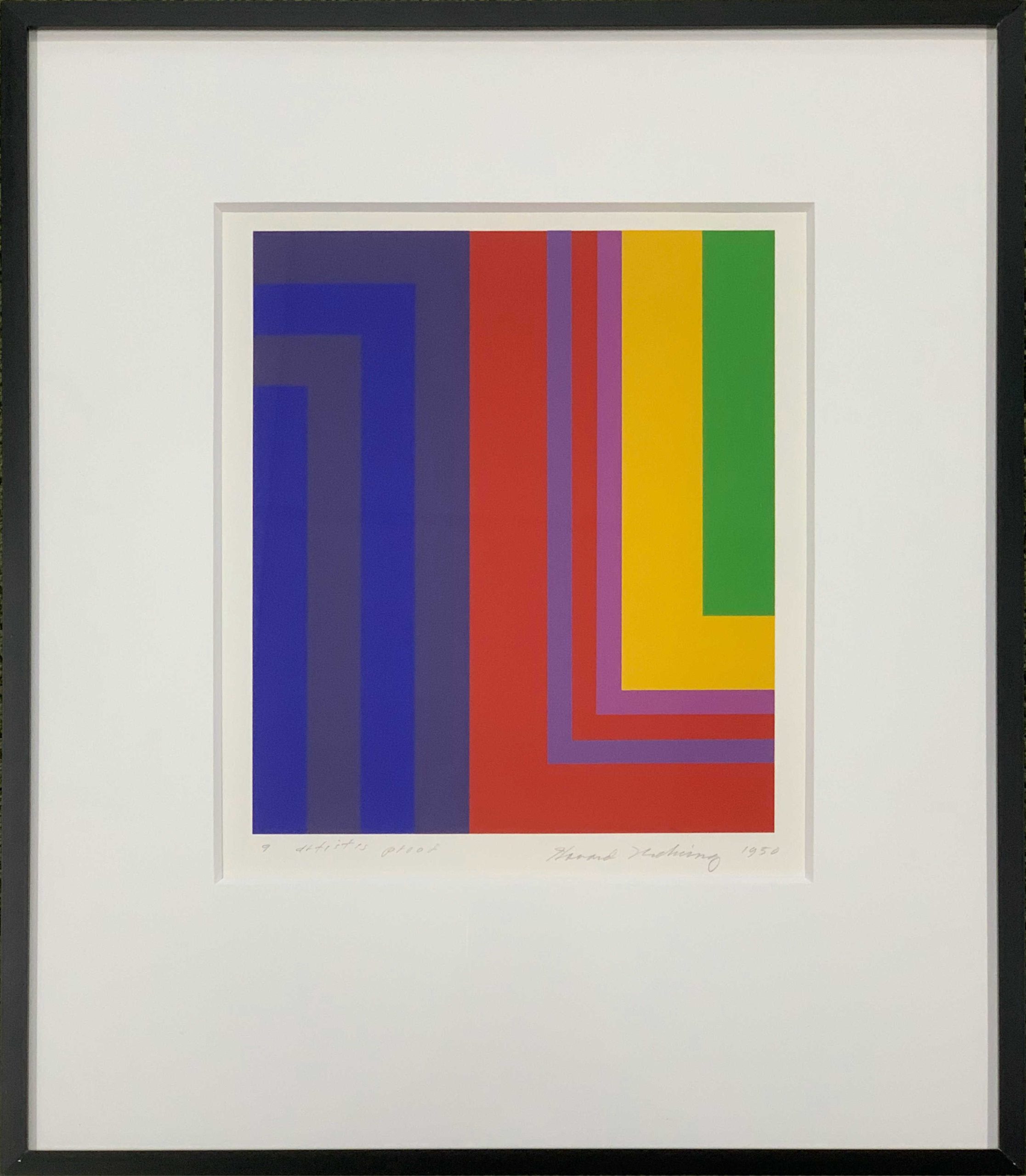 A rare signed proof of an archetypal Howard Mehring hard-edged silkscreen, in extraordinary condition, beautifully presented.