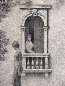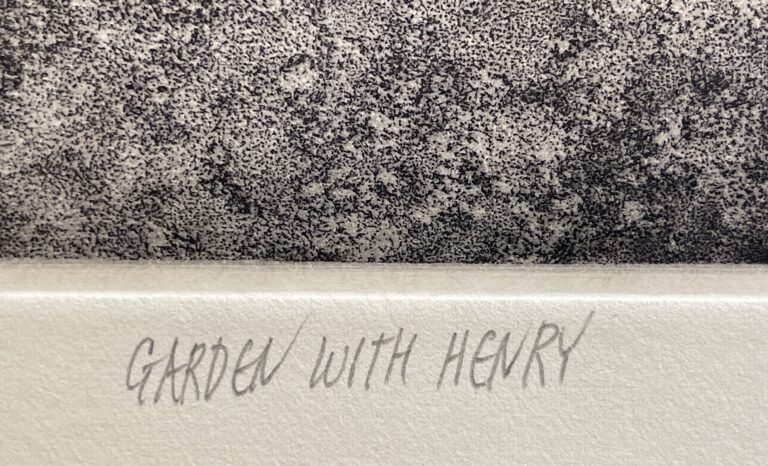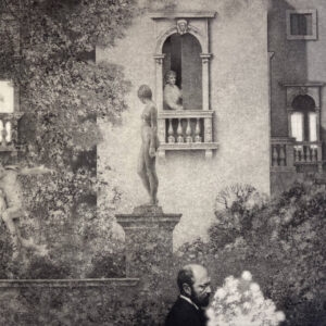 A haunting and melancholic picture of Henry in a garden. This print was specially made by Milton to accompany the Deluxe edition of the portfolio of drawings that Milton made to illustrate Henry James’ The Aspern Papers.