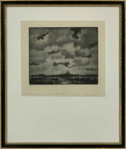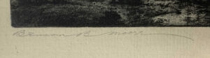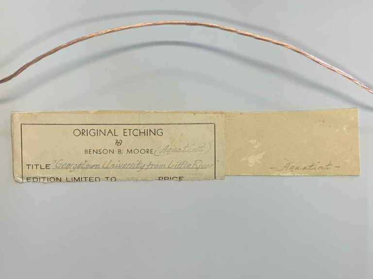 A dark and moody view of Georgetown University seen from Little River by celebrated Washingtonian artist Benson Bond Moore. Little River is a very small tributary—less than five miles long—of the South Fork Shenandoah River which joins the North River just upstream from North River Gap.