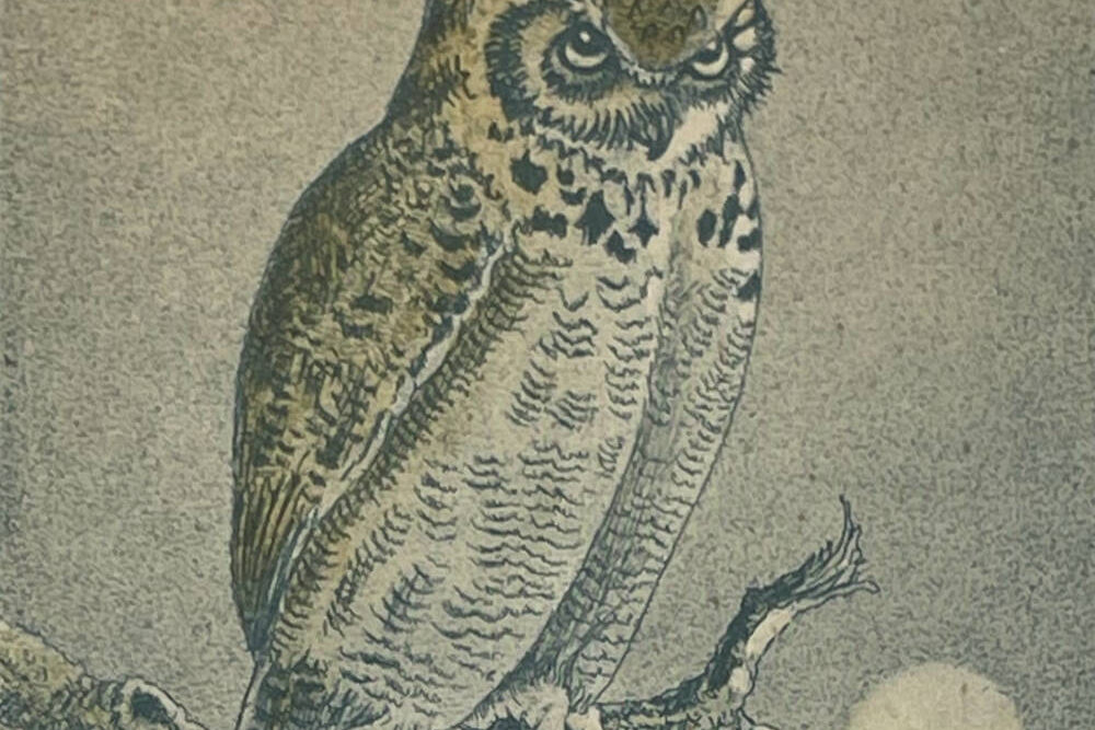A beautiful study of a great horned owl by celebrated Washingtonian Native American artist Benson Bond Moore.