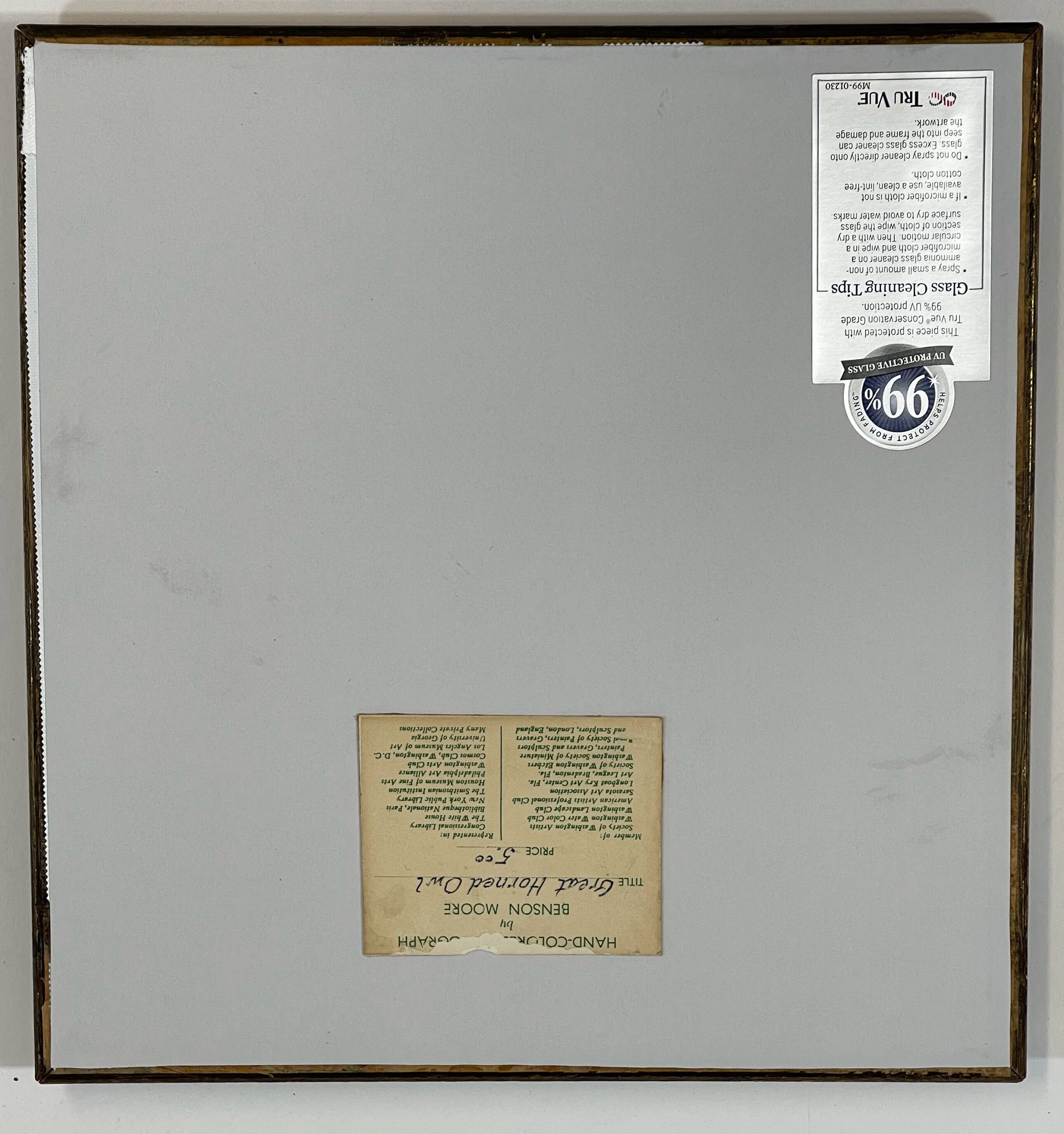 Reframed in its vintage frame under a linen-cloth-wrapped mat and behind 99% UV-filtering conservation glass.  All conservation materials.