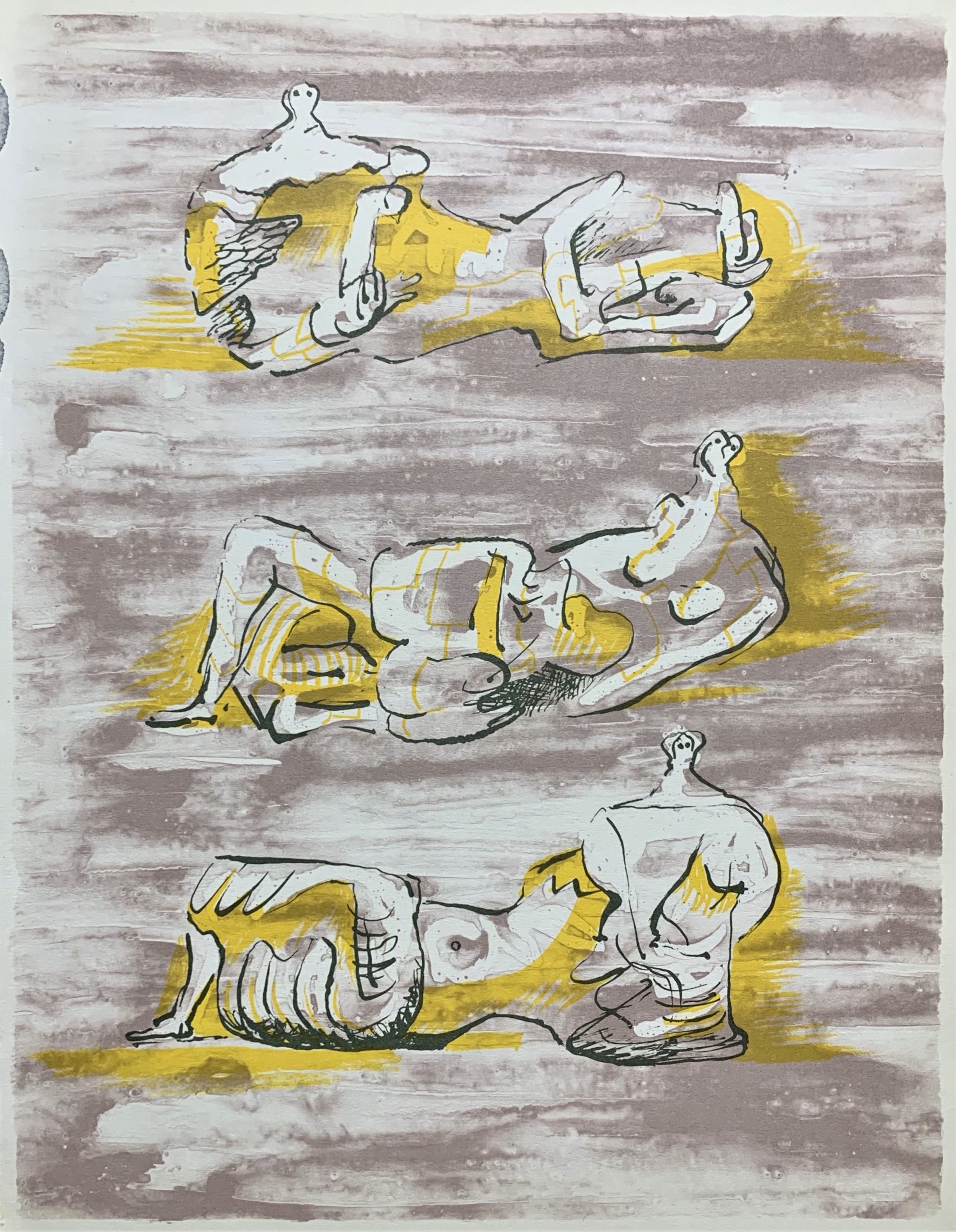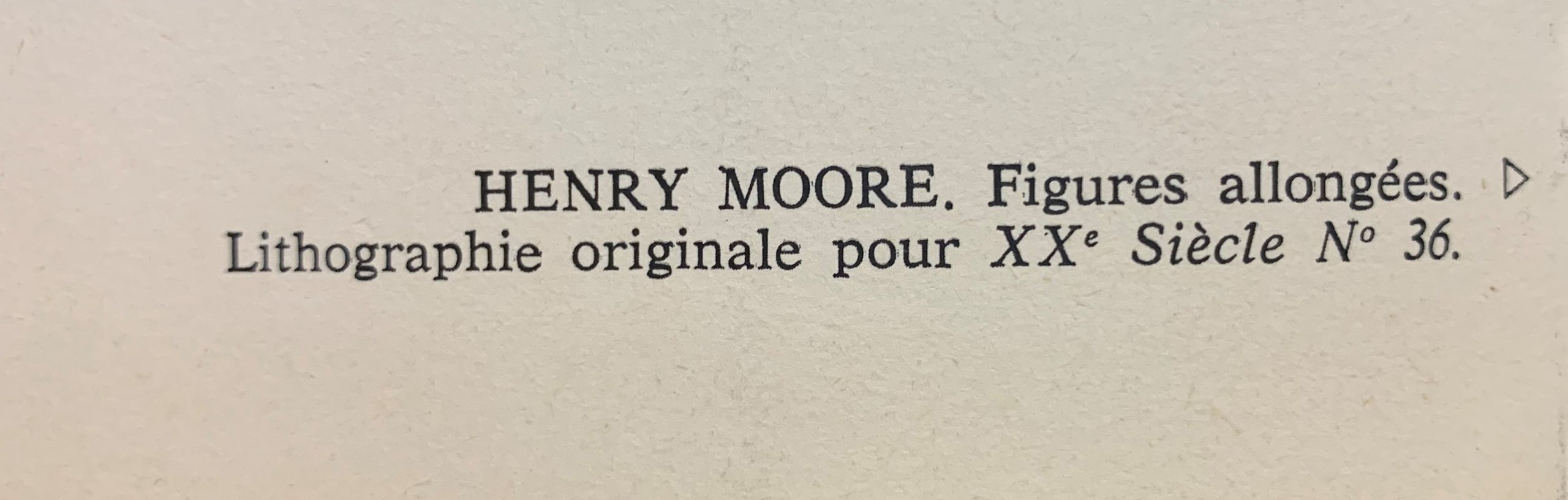 An original stone lithograph from XXe Siecle magazine of one of Henry Moore’s famous reclining figures.