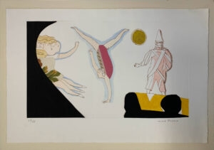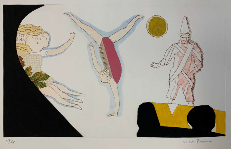 French artist Max Papart’s images of circuses and performers were central to his oeuvre. His works almost always show the sunny humor and bright colors of the French Riviera, where he was born. His subject matter invariably cheerful and fun. His style is Cubist—interesting enough to keep your attention and imagination.