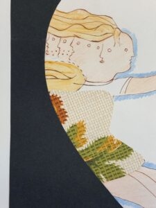 Etching by Dry Point with Water Colors, Collage, and Colored Pencil.