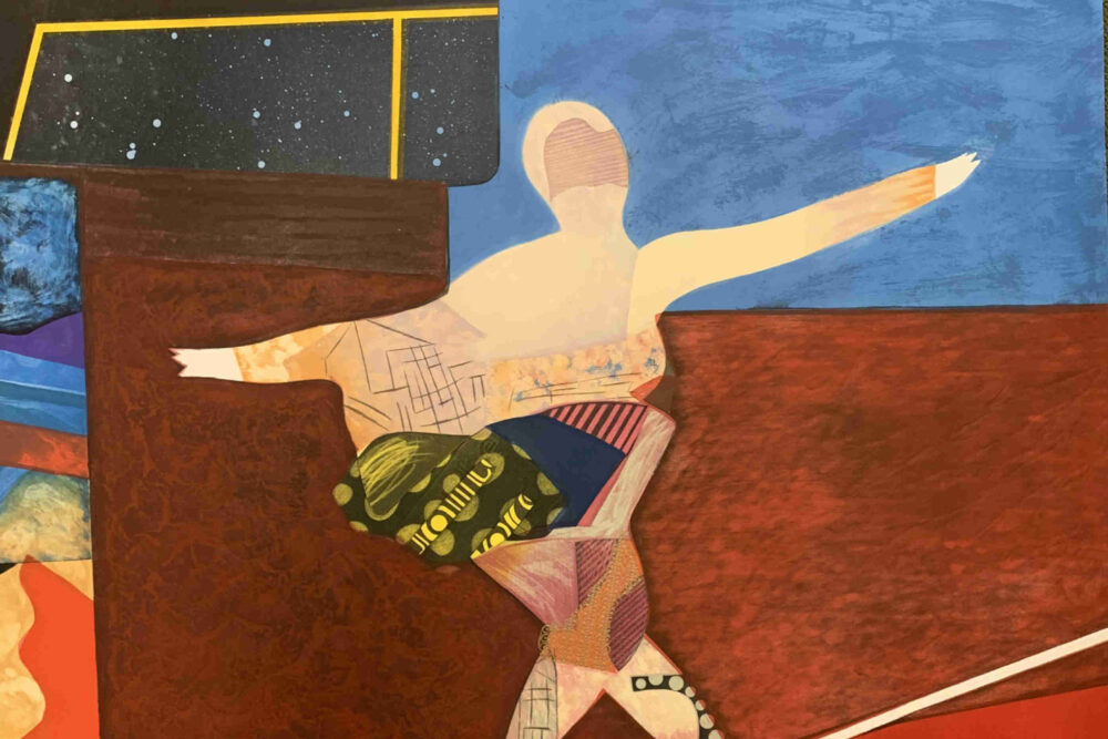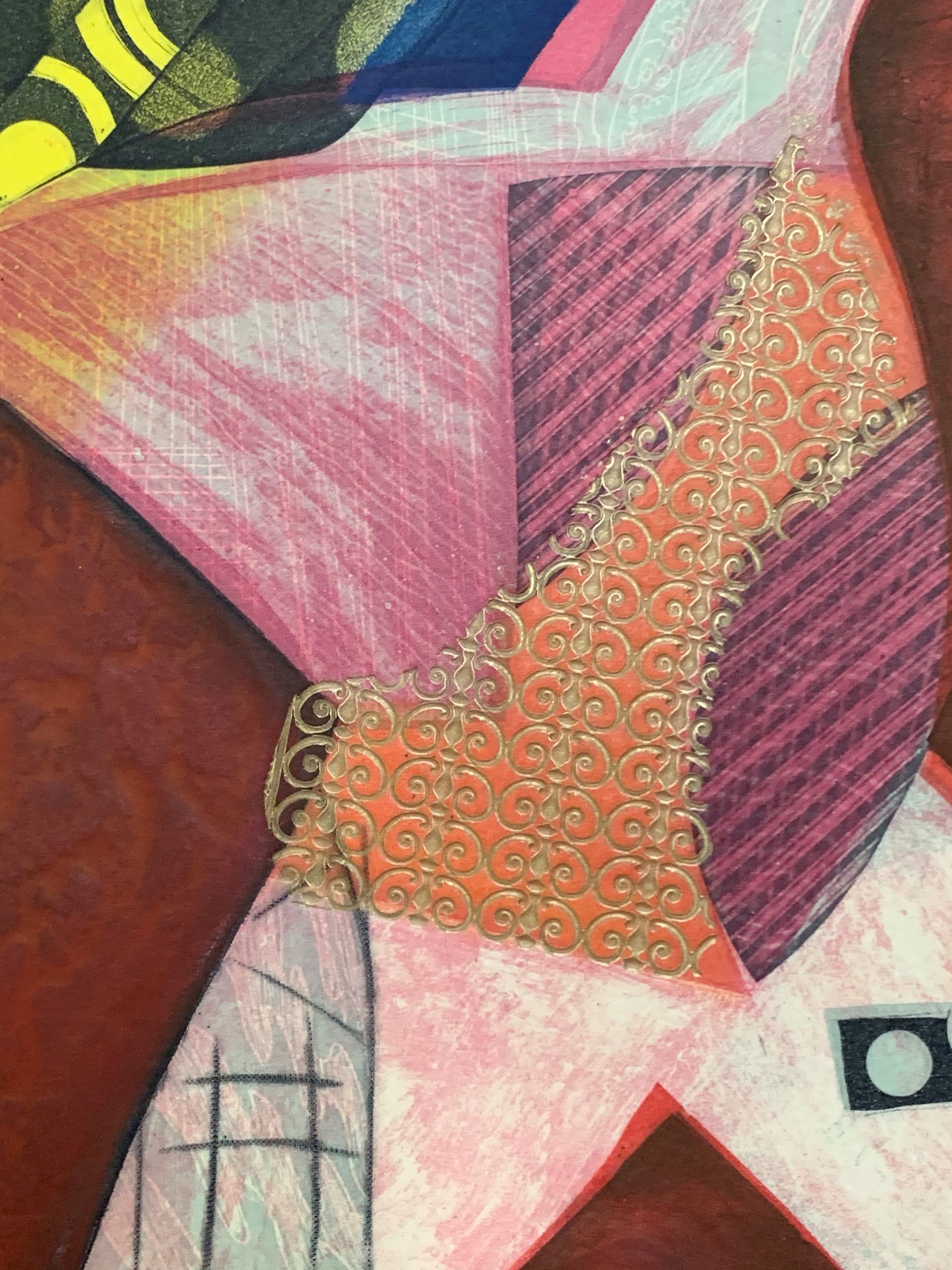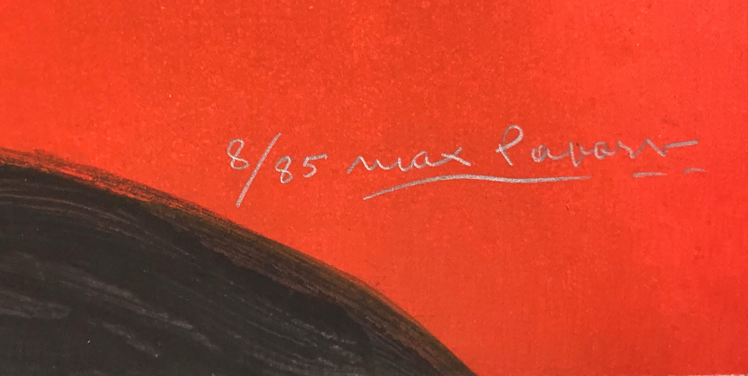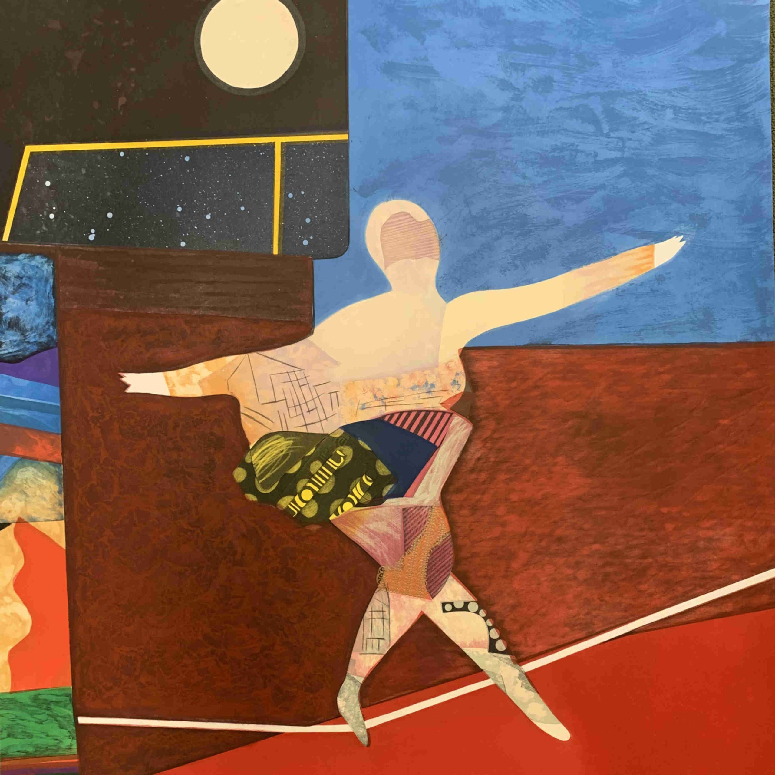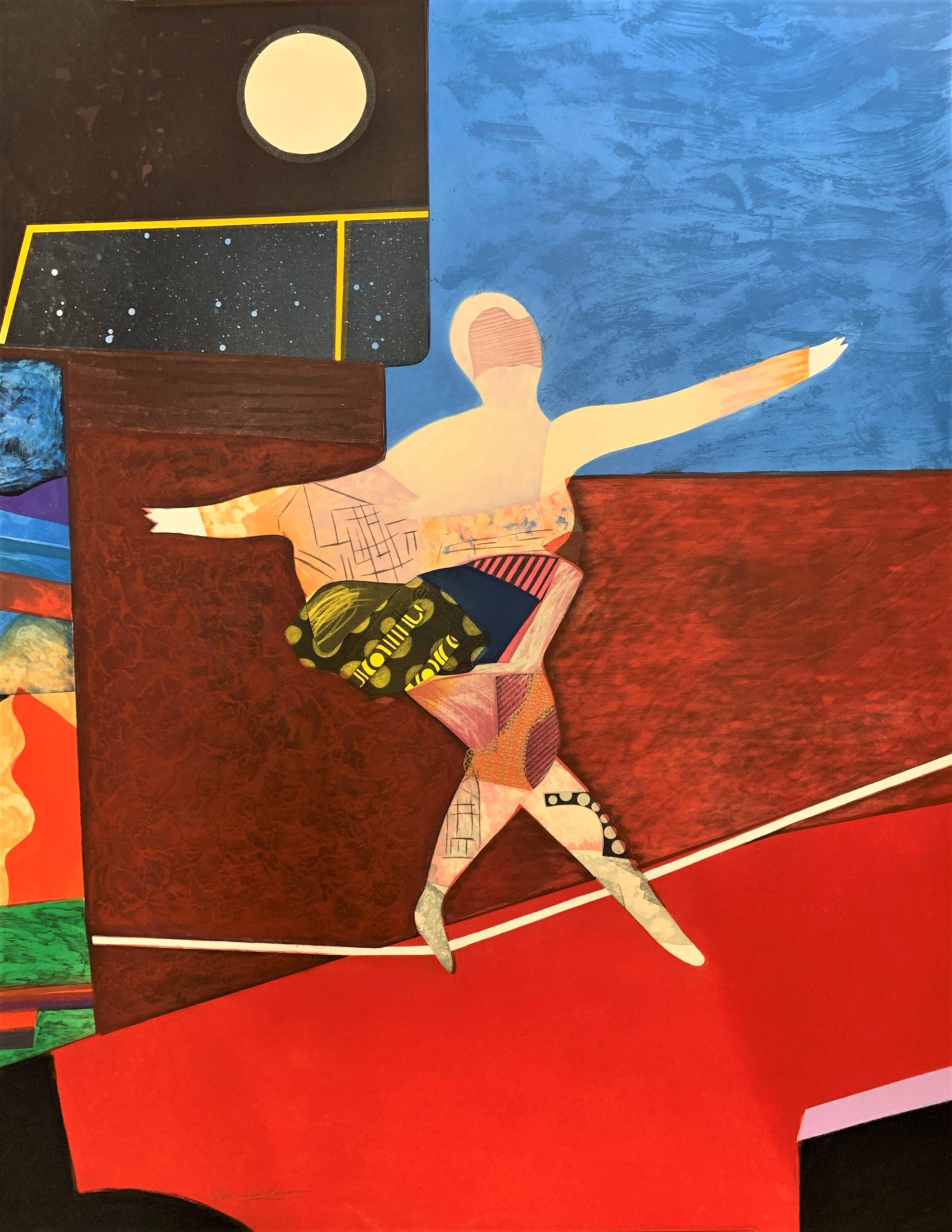 Signed and numbered original limited edition serigraph print on embossed paper by Max Papart. Artwork depicts an abstract figural image of a trapeze in the cubist style.
