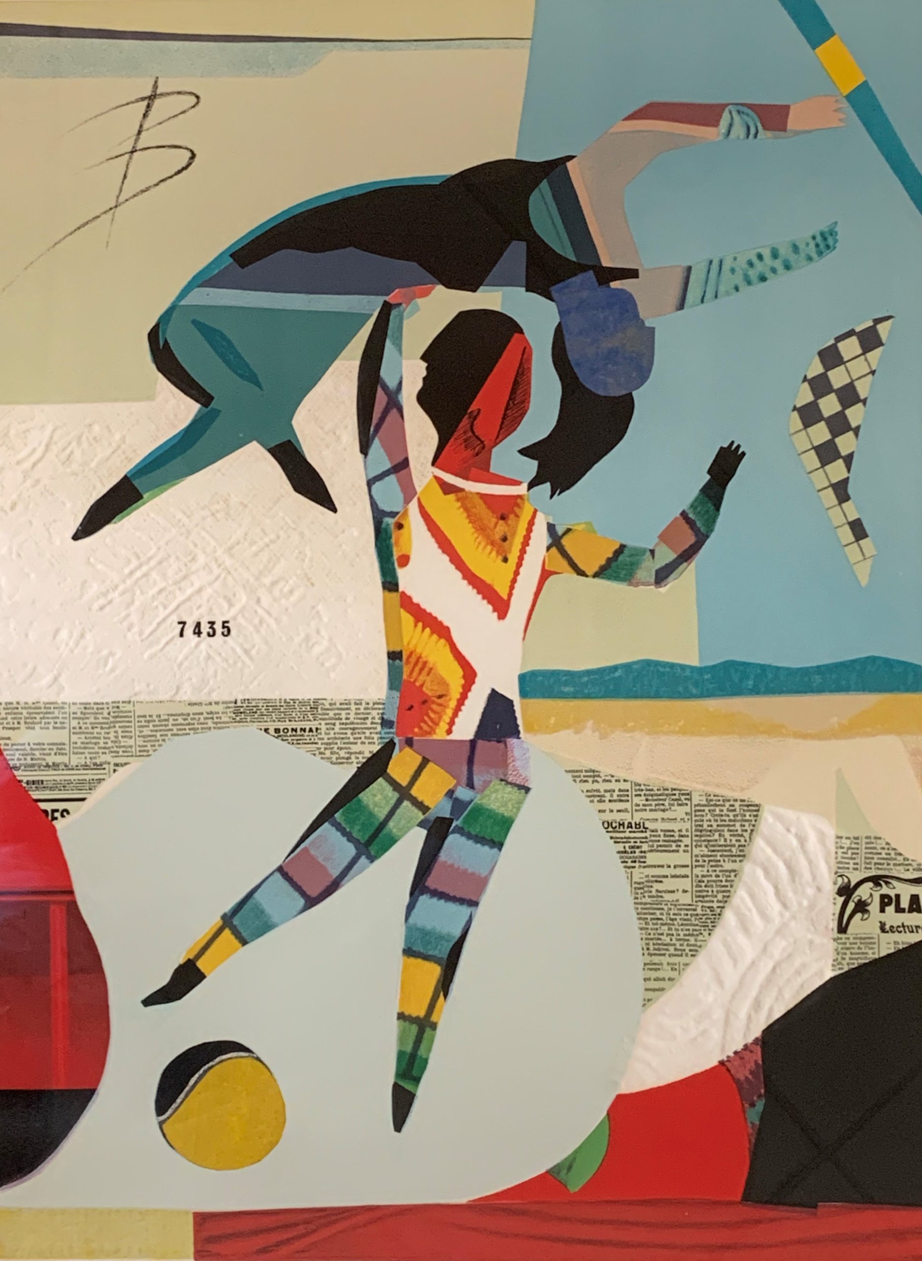 Artwork depicts an abstract figural composition in the cubist style with two dancers.