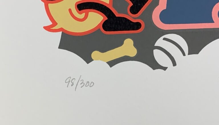 The Mother Goose portfolio was issued in an edition of 300, with 100 copies retained by the artists, 100 copies retained by Serigrafia, and 100 copies donated to The Children’s Health Fund for sale at an initial offering price of $5000. The portfolio was designed by Chiu Li Design.