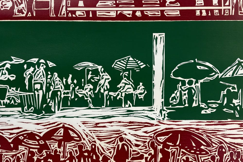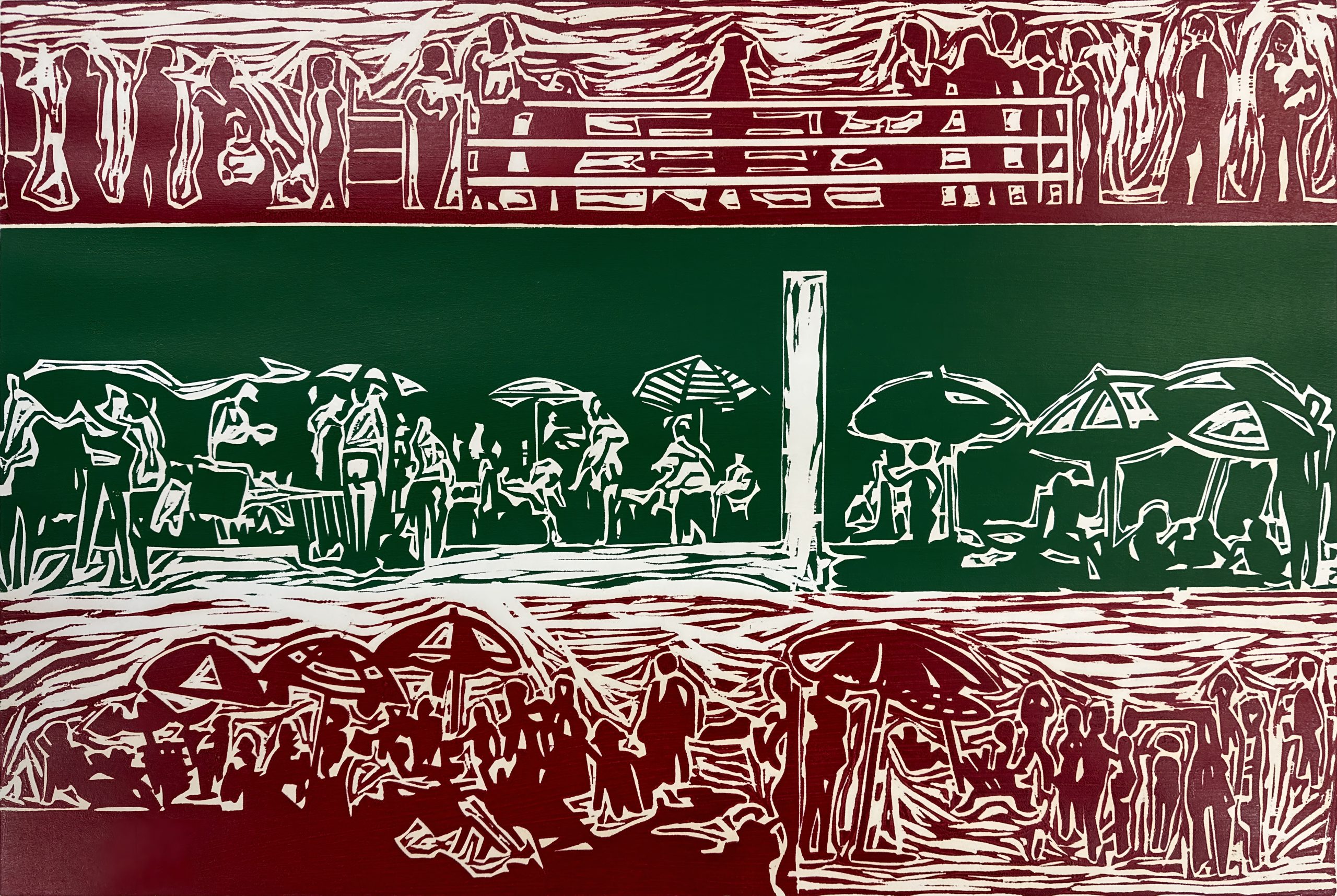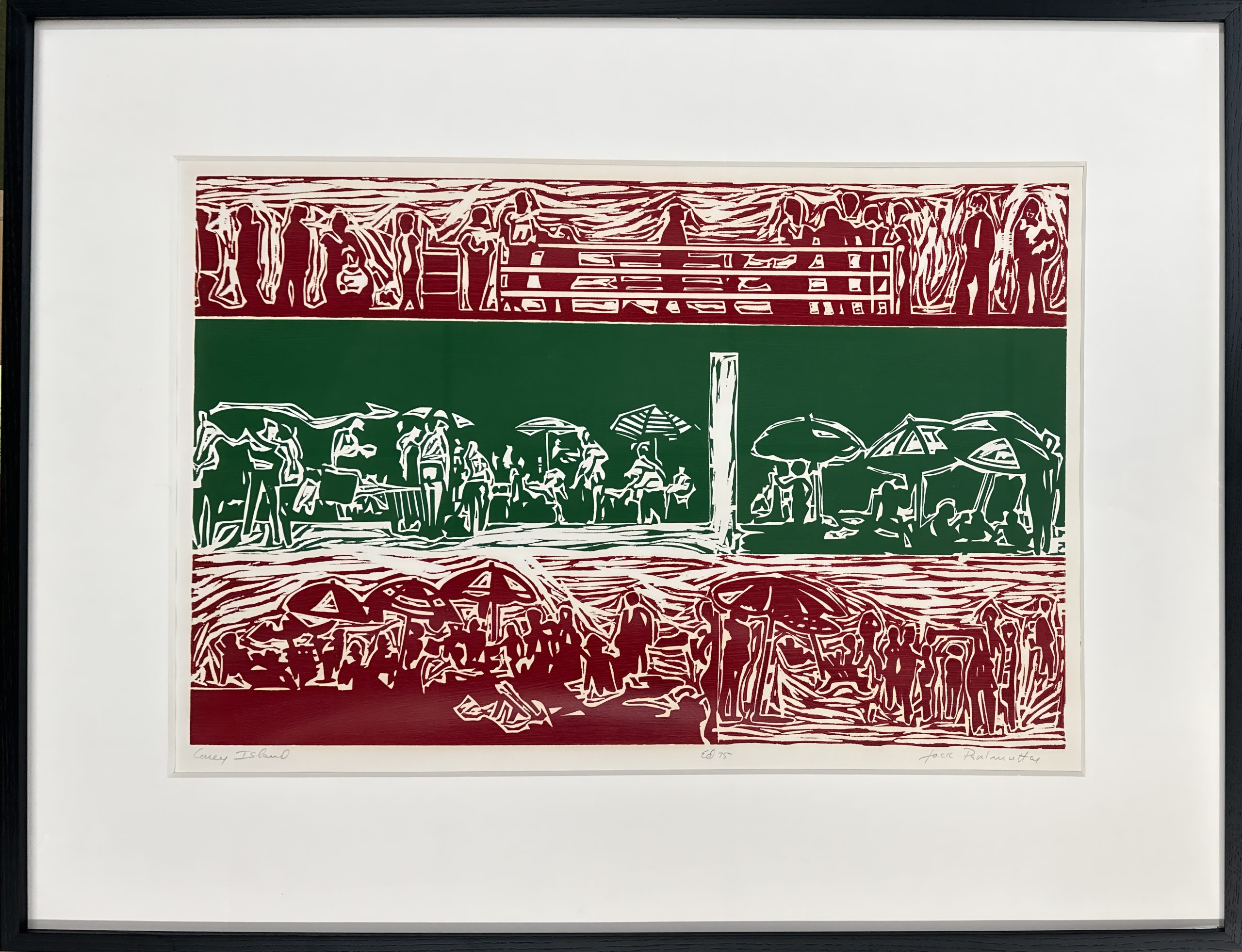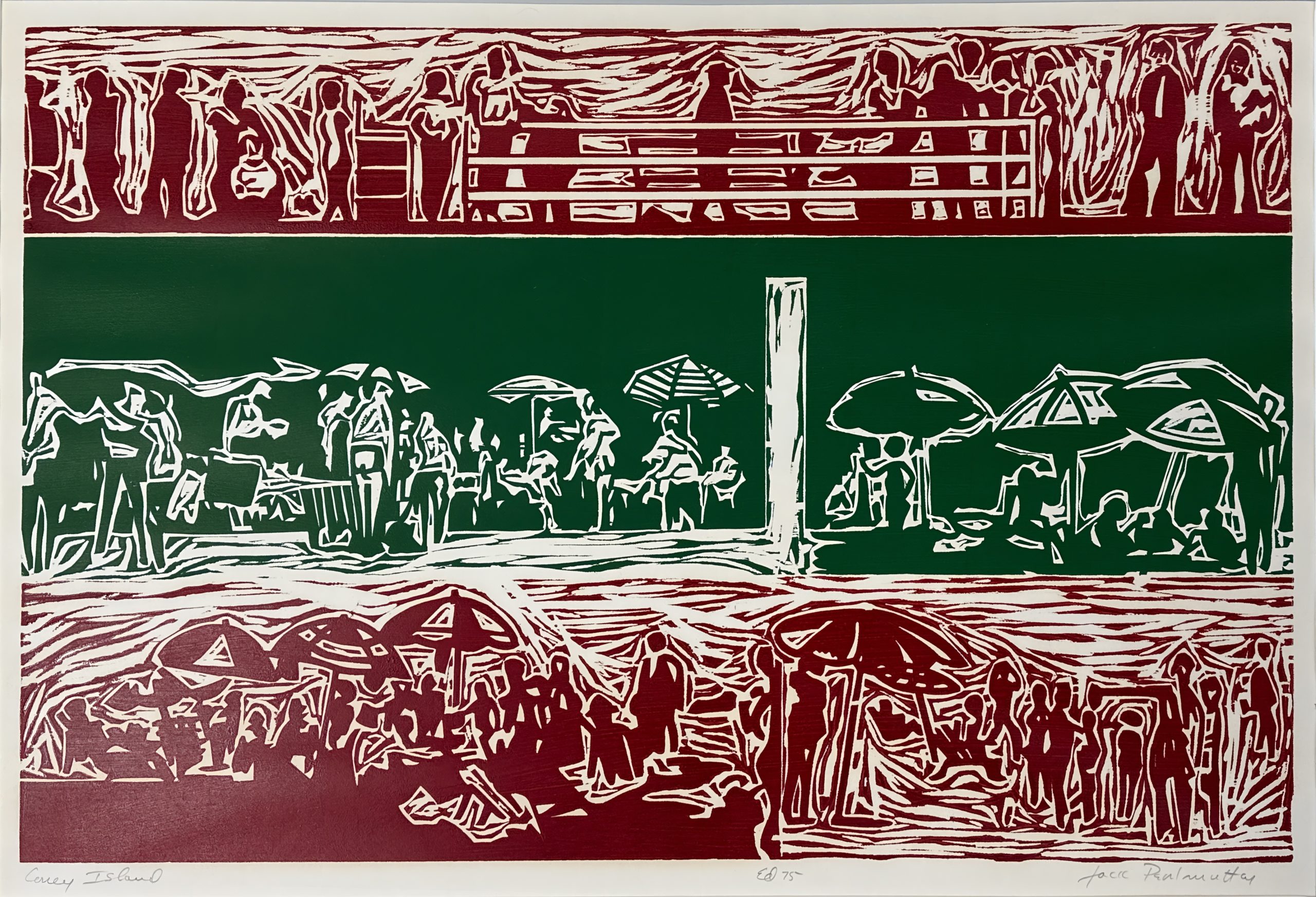 With bright color and glossy ink, Coney Island is a fun work of art. And if the careful viewer notices the interesting use of color and the texture afforded by Perlmutter’s brushstroke, so much the better.