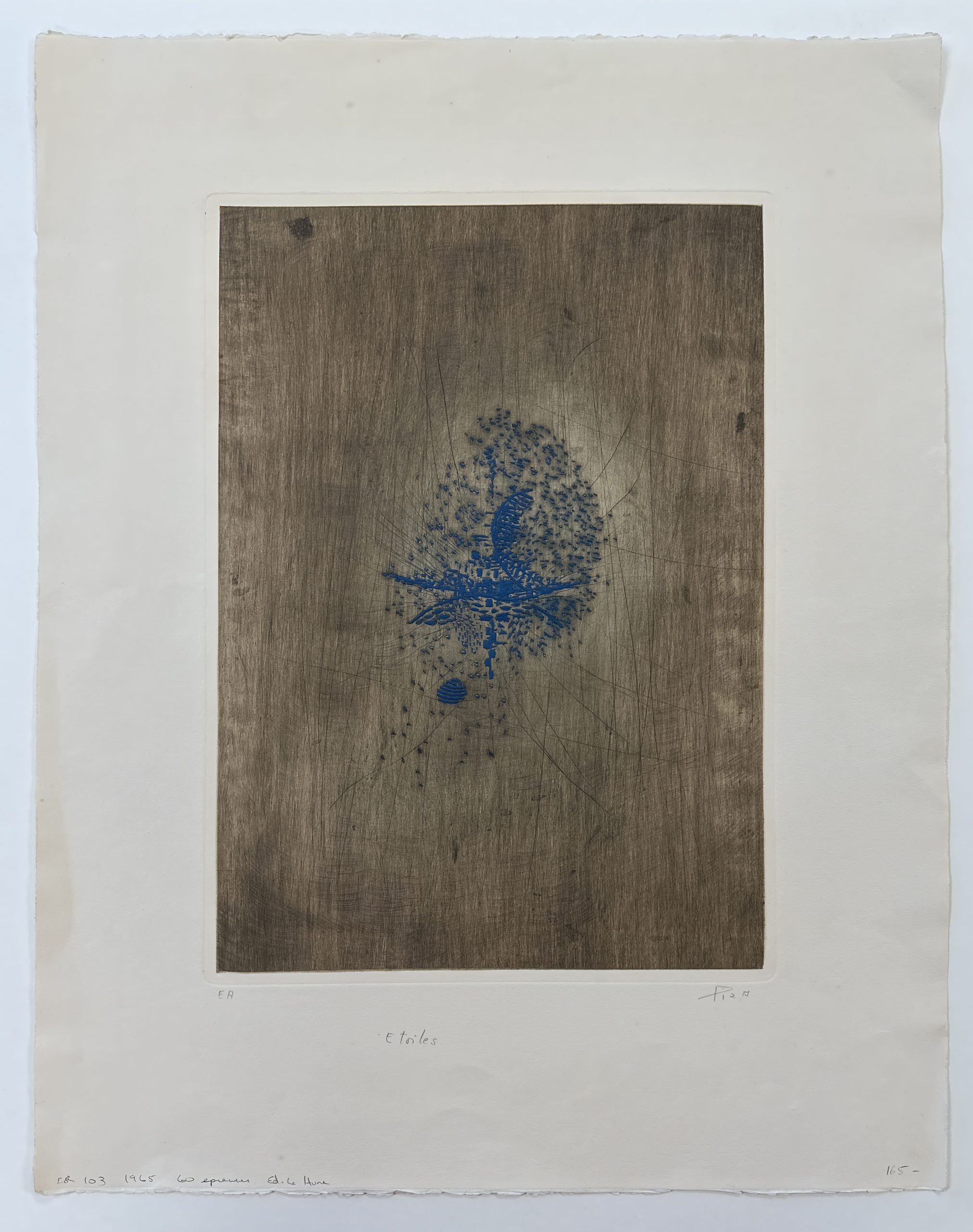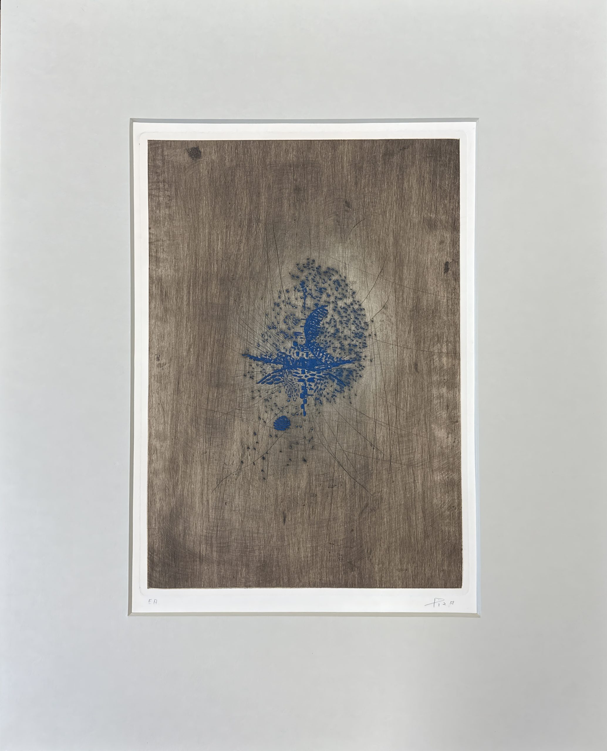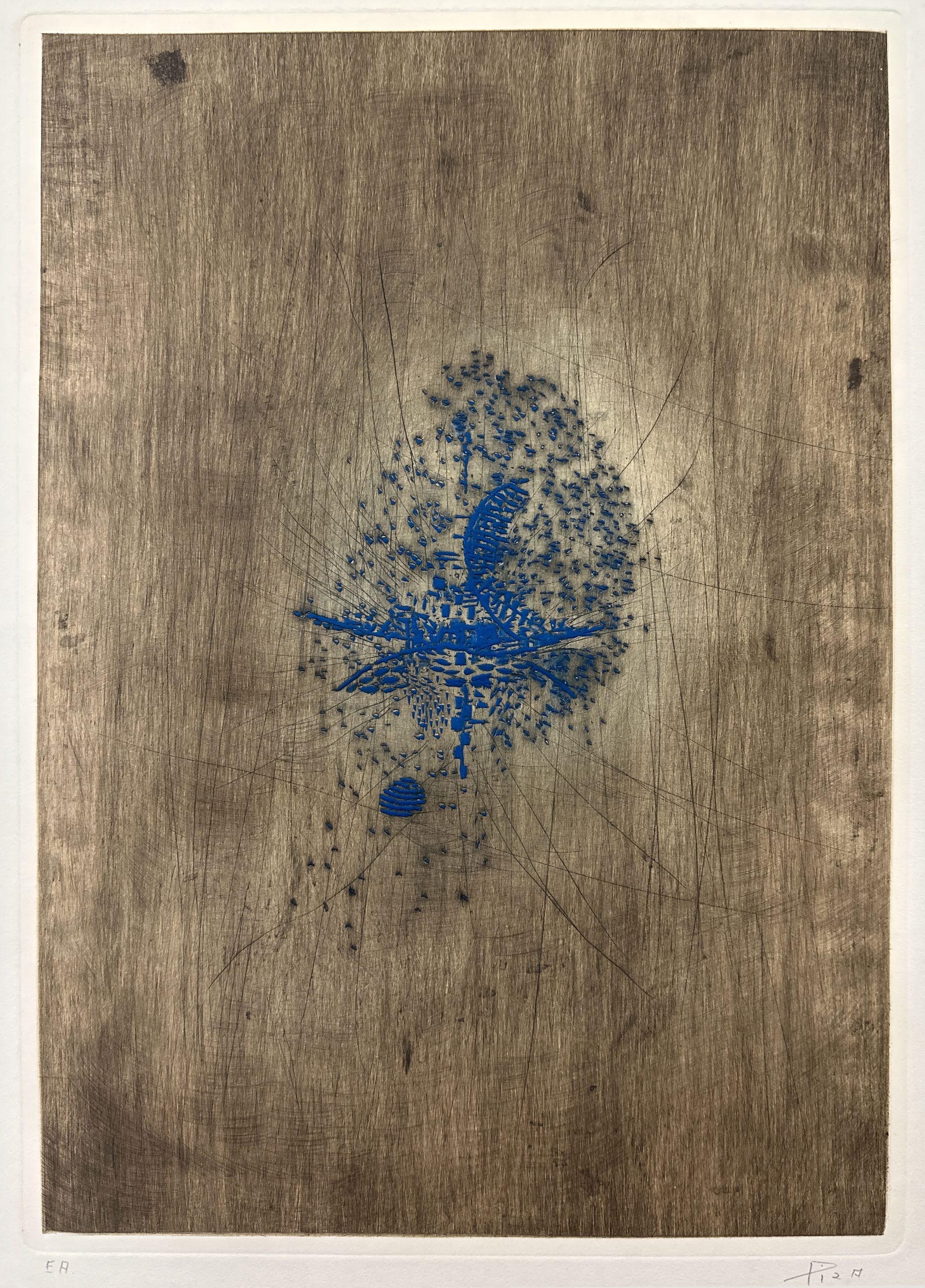 Intaglio Print In Blue And Brown From A Steel Plate Engraved By Gouge On Arches White Wove Paper
