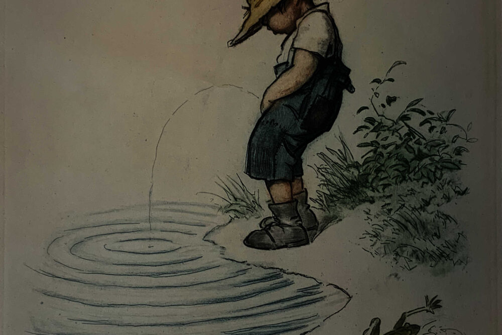 This work likely was created to serve as a menu cover—desirable for the restaurant owner who wanted to motivate customers to purchase wine instead of water!